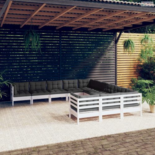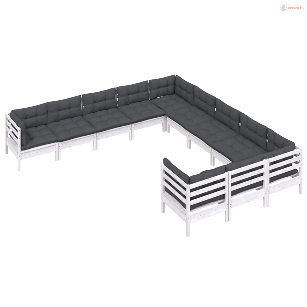 11 részes fehér fenyőfa kerti ülőgarnitúra párnákkal