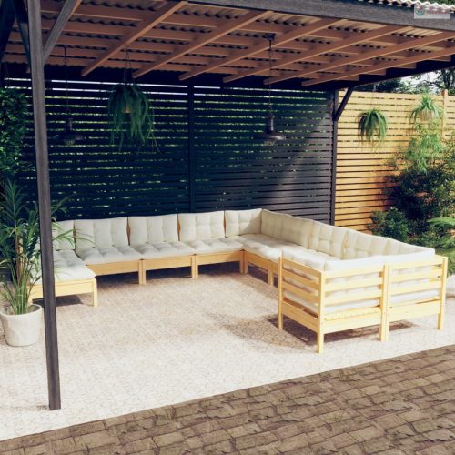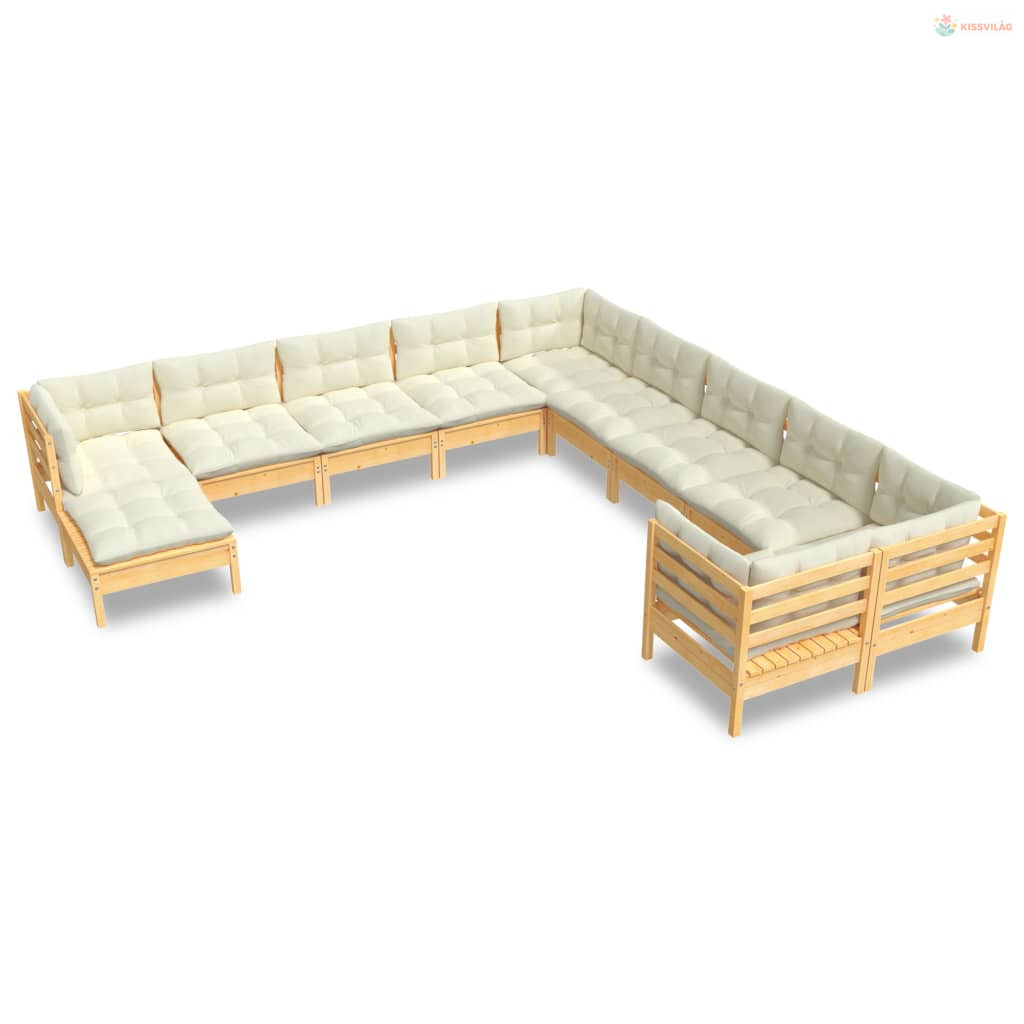 11 részes fenyőfa kerti ülőgarnitúra krémszínű párnákkal