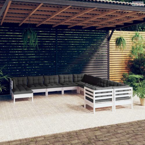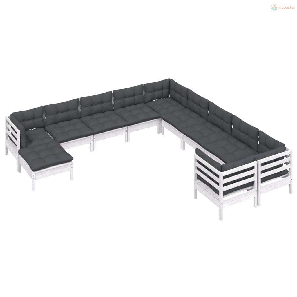 11 részes fehér fenyőfa kerti ülőgarnitúra párnákkal
