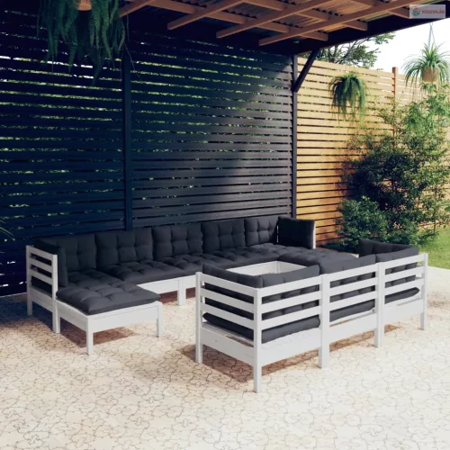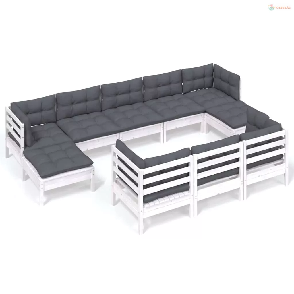 10 részes fehér tömör fenyőfa kerti ülőgarnitúra párnákkal