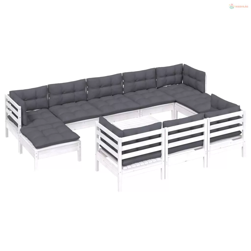 11 részes fehér tömör fenyőfa kerti ülőgarnitúra párnákkal