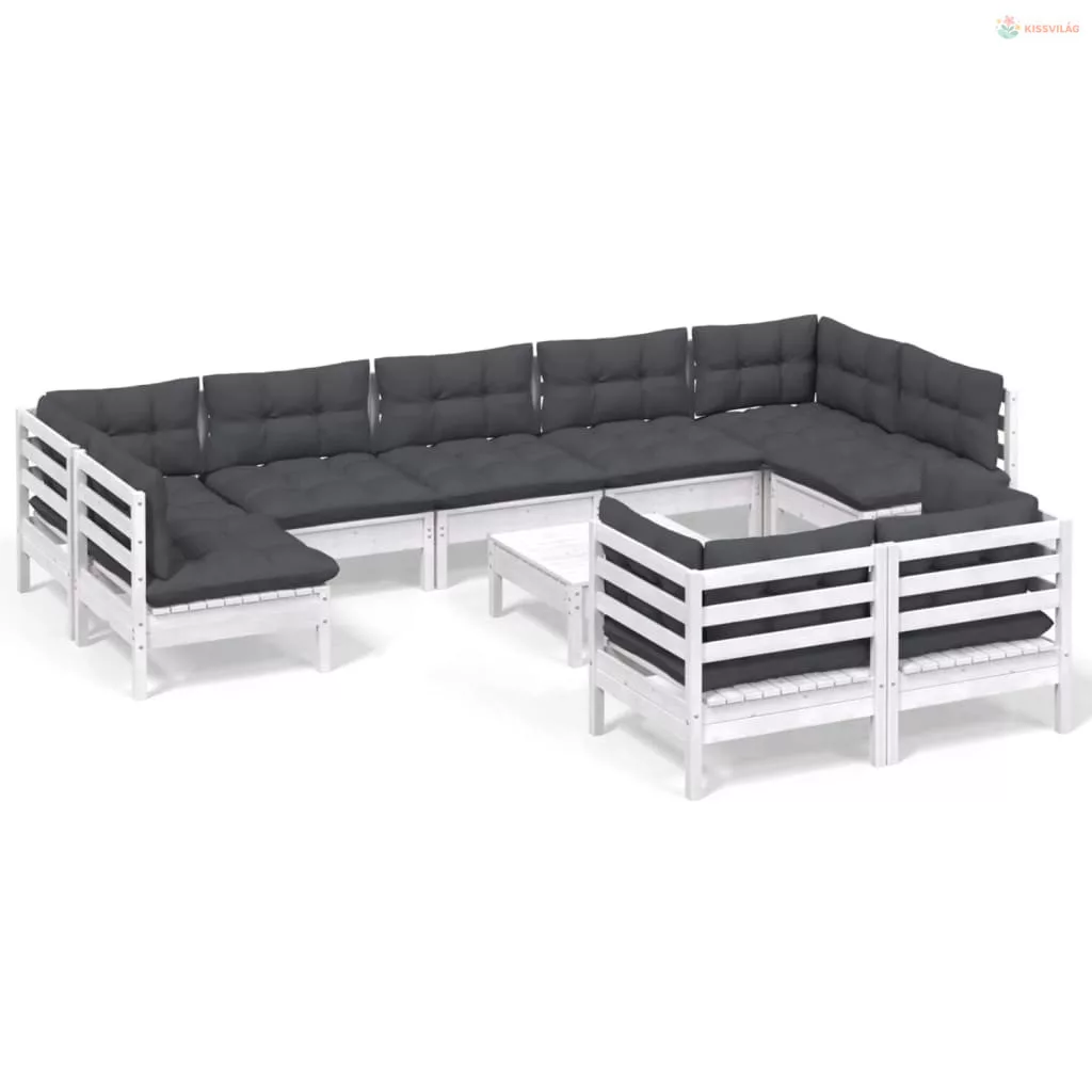 10 részes fehér tömör fenyőfa kerti ülőgarnitúra párnákkal
