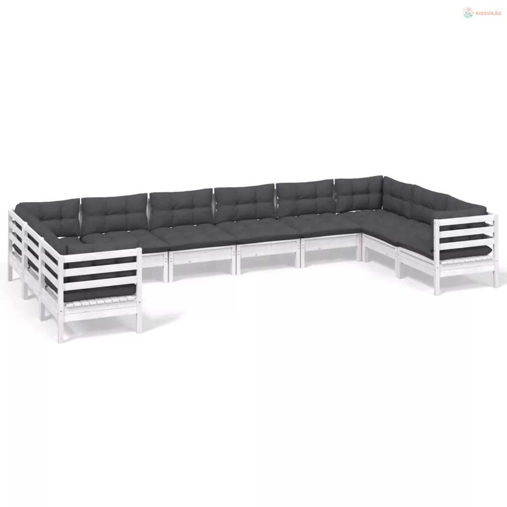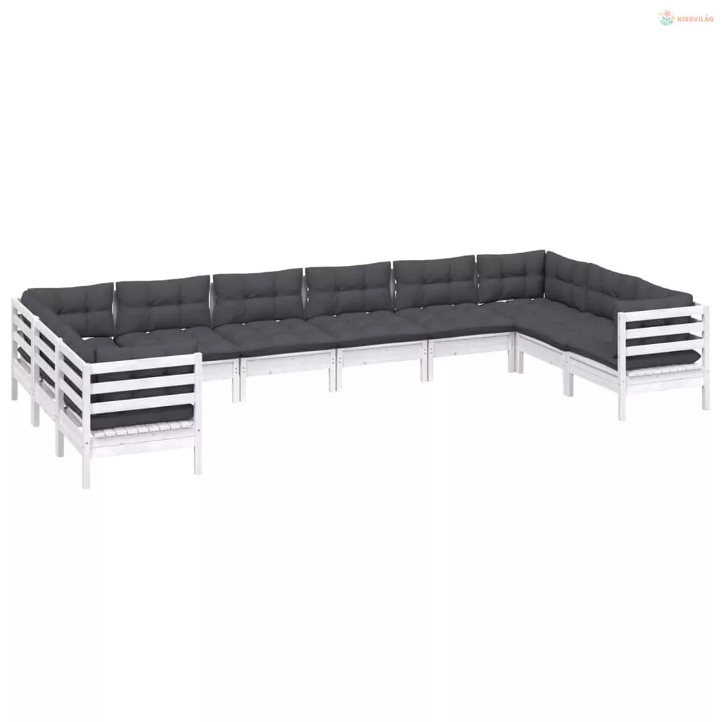 10 részes fehér fenyőfa kerti ülőgarnitúra párnákkal
