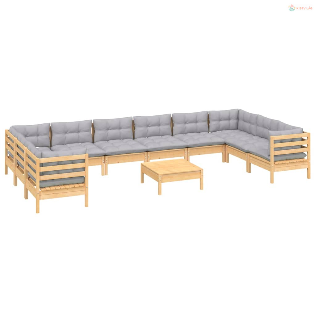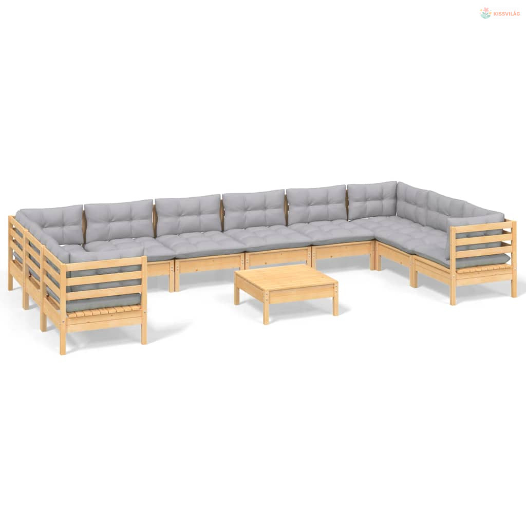 11 részes fenyőfa kerti ülőgarnitúra szürke párnákkal