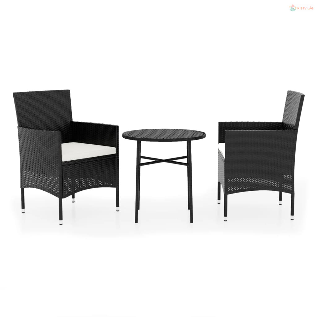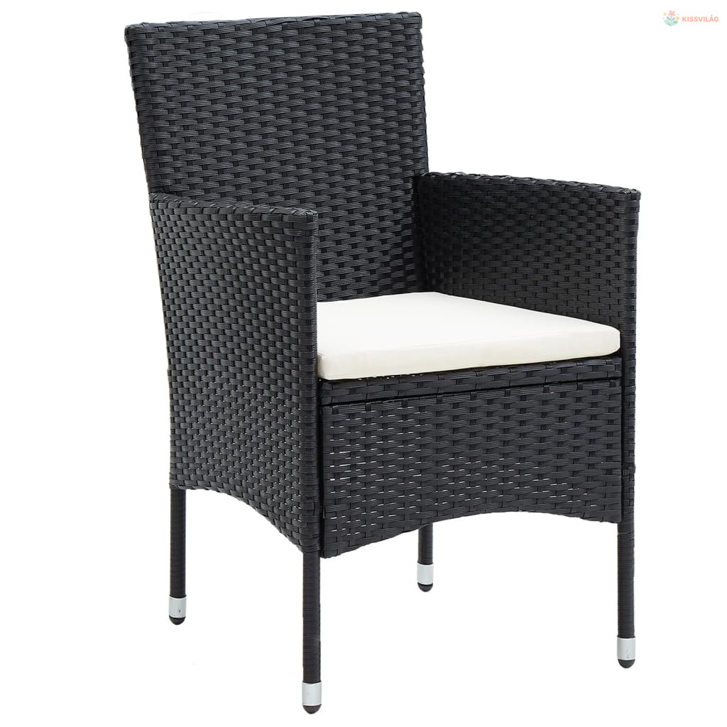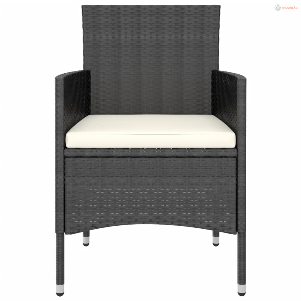 3 részes fekete polyrattan kerti étkezőgarnitúra