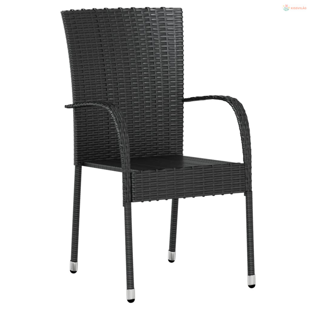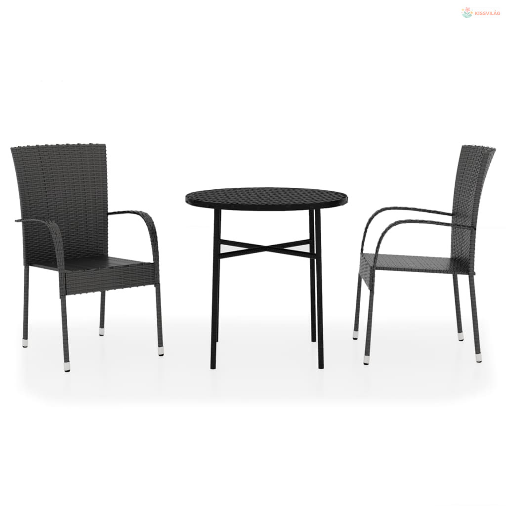 3 részes fekete polyrattan kerti étkezőgarnitúra