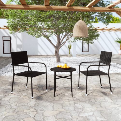 3 részes fekete polyrattan kerti étkezőgarnitúra