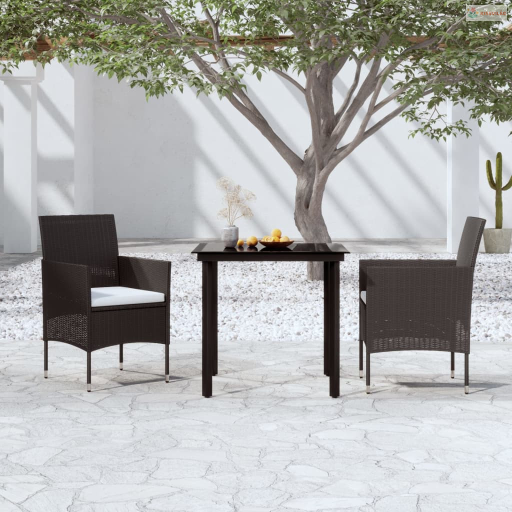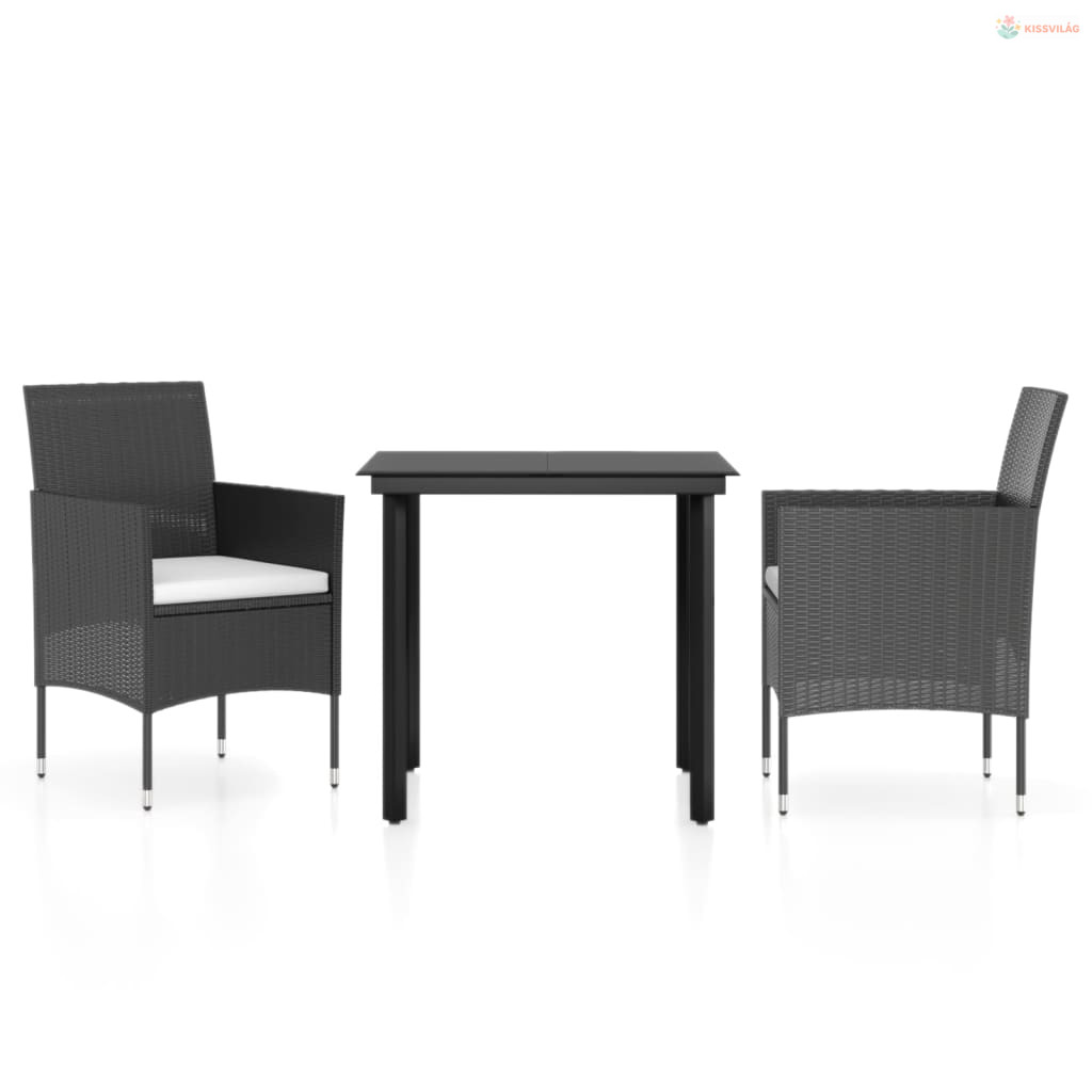 3 részes fekete kerti étkezőgarnitúra párnákkal