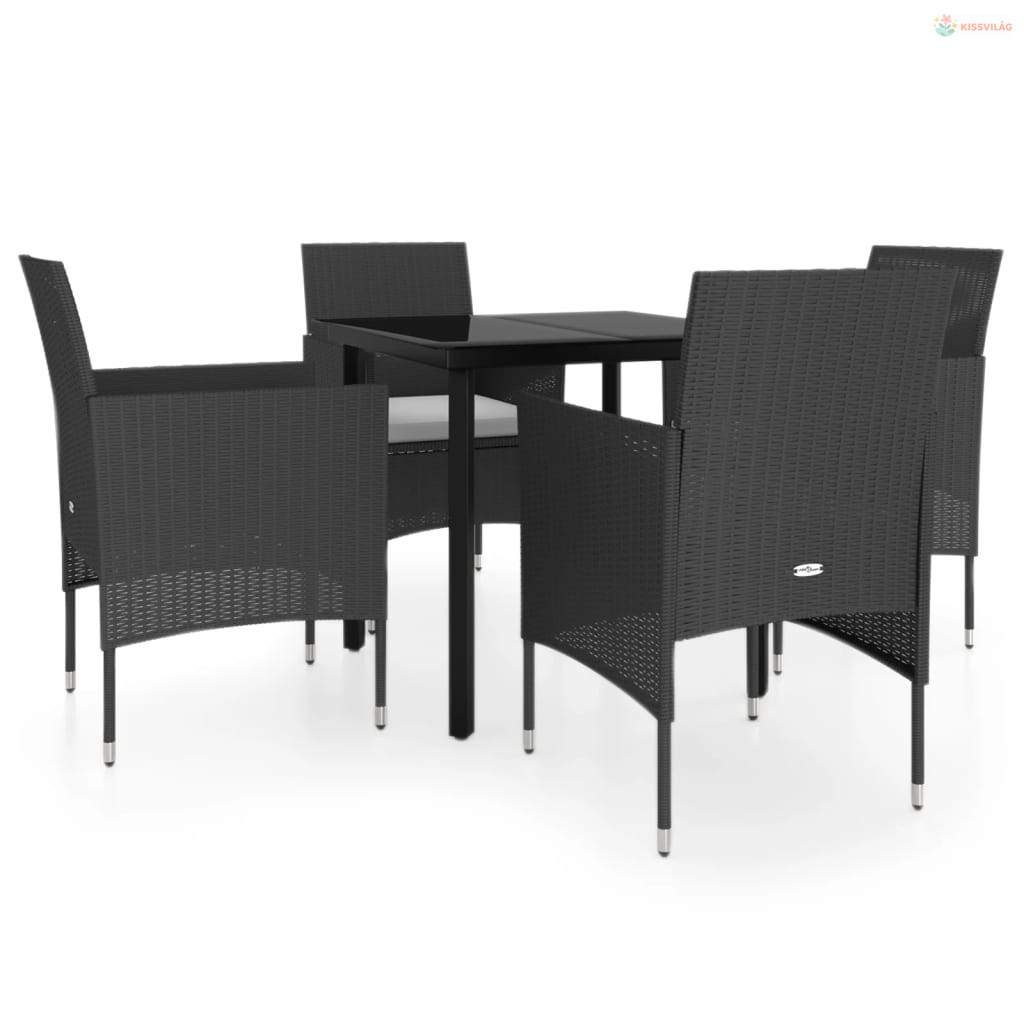 5 részes fekete kerti étkezőgarnitúra párnákkal