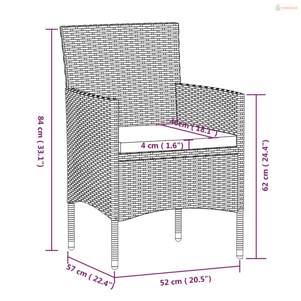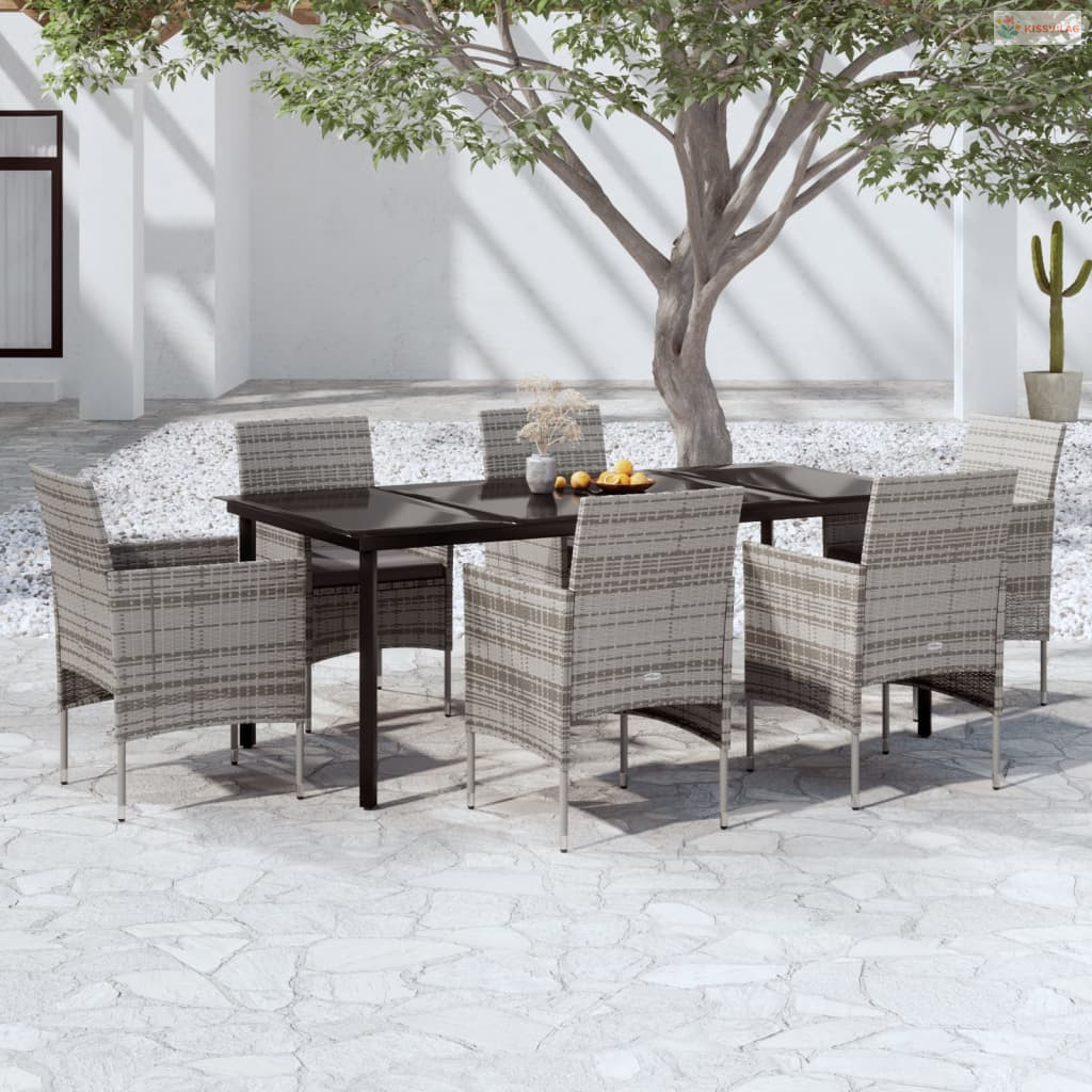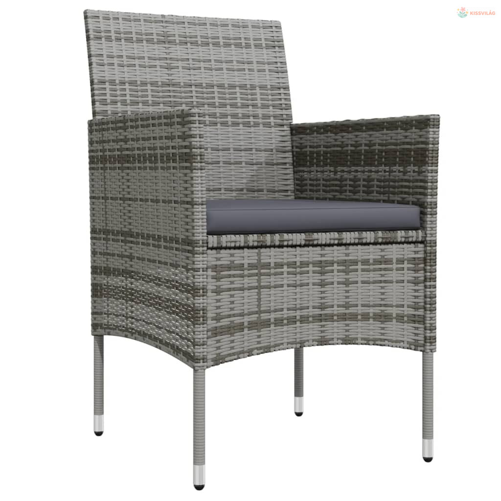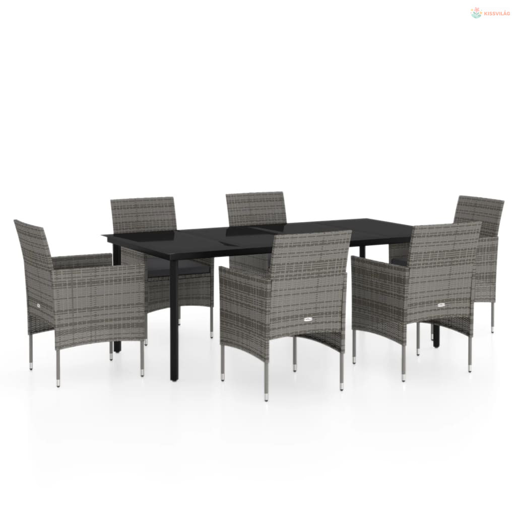 7 részes szürke és fekete kerti étkezőgarnitúra párnákkal