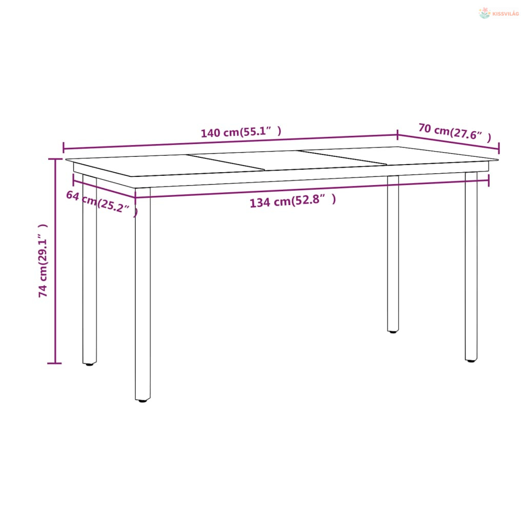 • Mérete: 140 x 70 x 74 cm (Ho x Szé x Ma)