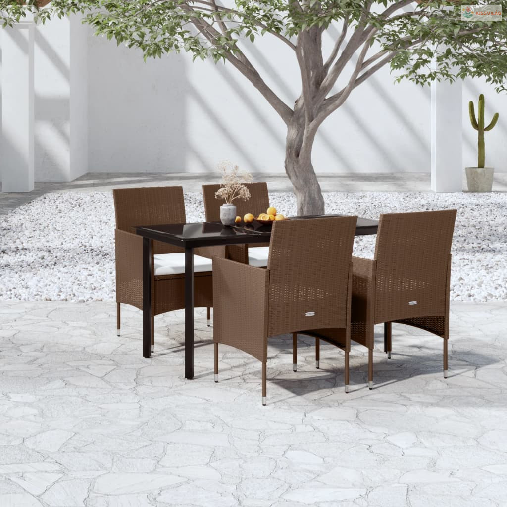 5 részes barna és fekete kerti étkezőgarnitúra párnákkal
