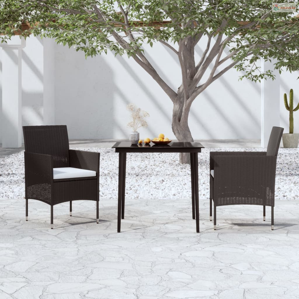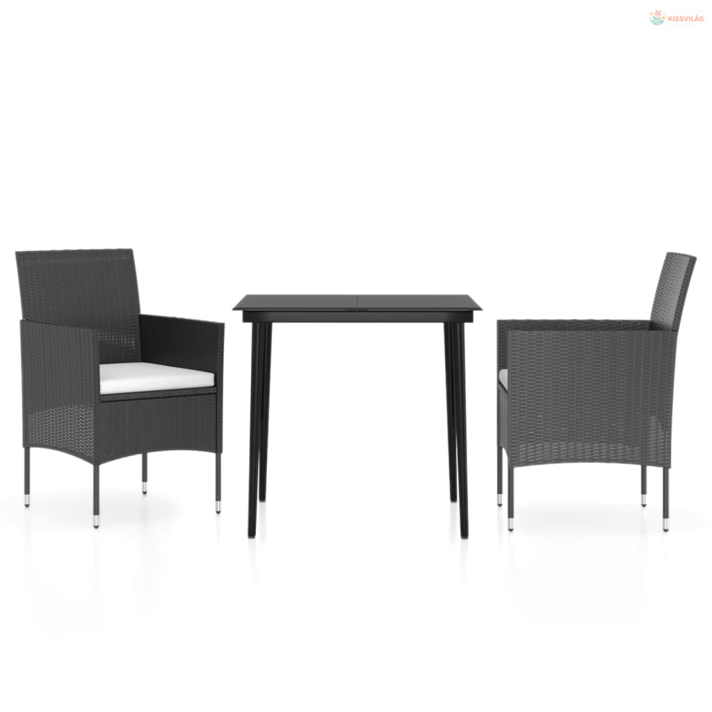 3 részes fekete kerti étkezőgarnitúra párnákkal