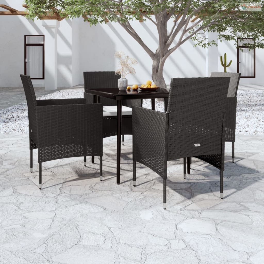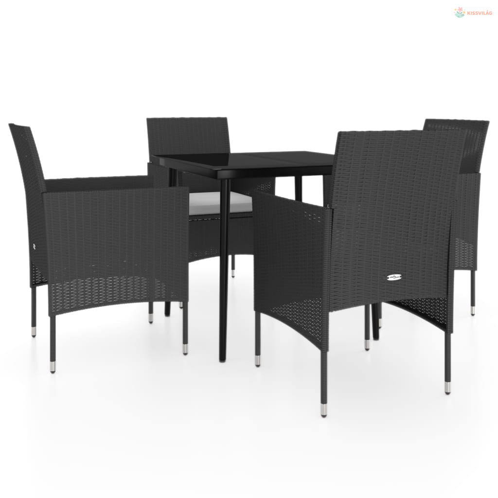 5 részes fekete kerti étkezőgarnitúra párnákkal