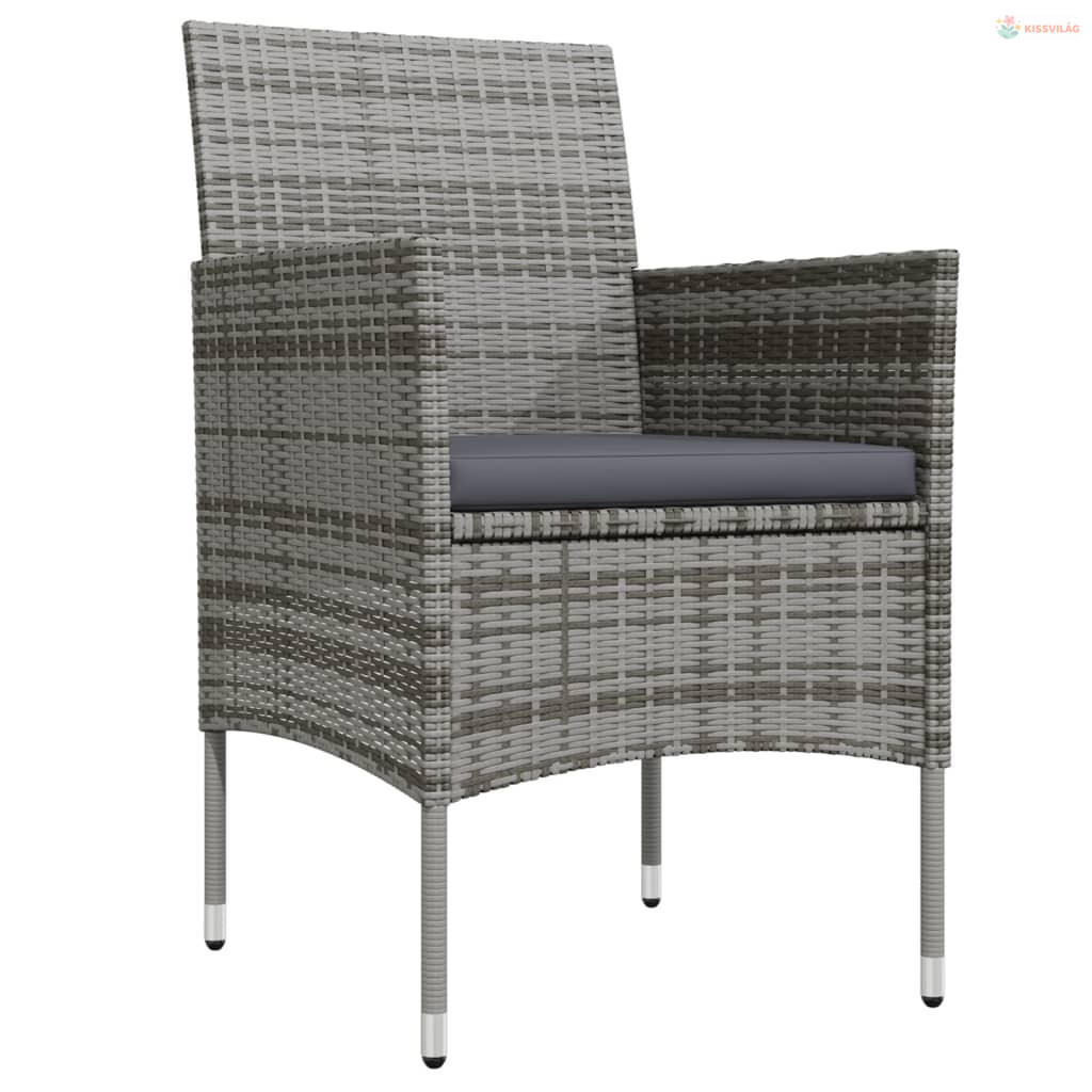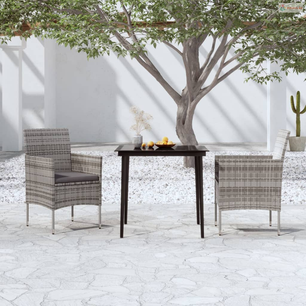 3 részes szürke és fekete kerti étkezőgarnitúra párnákkal