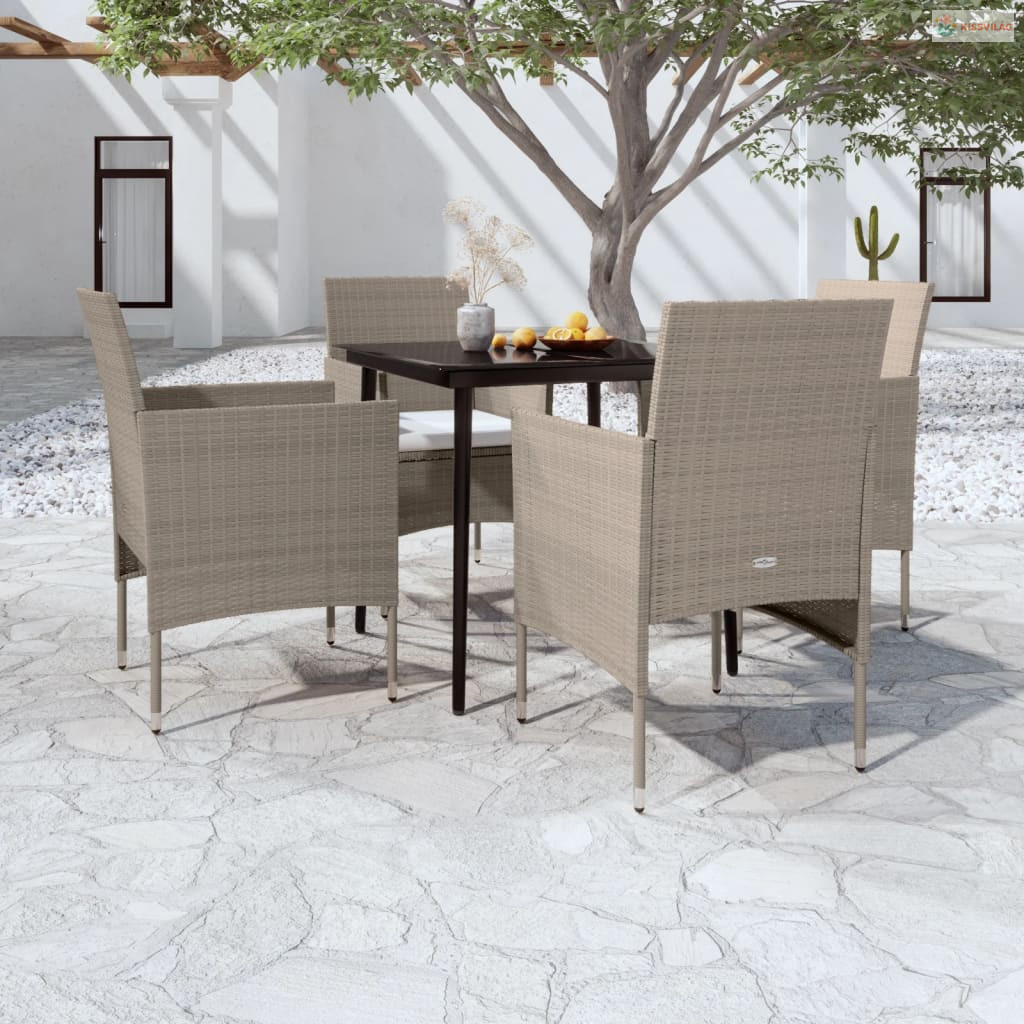 5 részes bézs és fekete kerti étkezőgarnitúra párnákkal