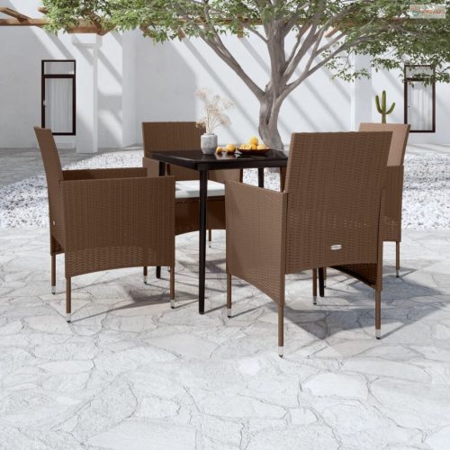5 részes barna és fekete kerti étkezőgarnitúra párnákkal