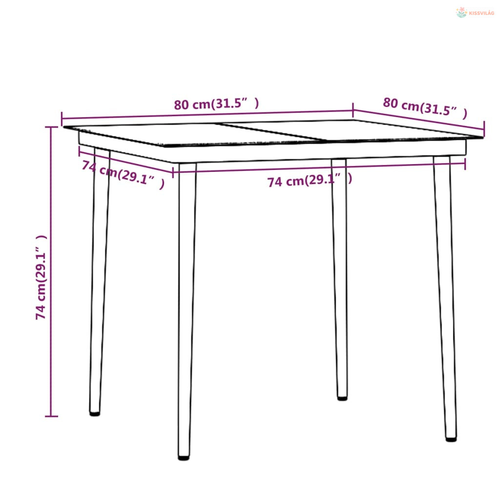 • Asztal mérete: 80 x 80 x 74 cm (Ho x Szé x Ma)