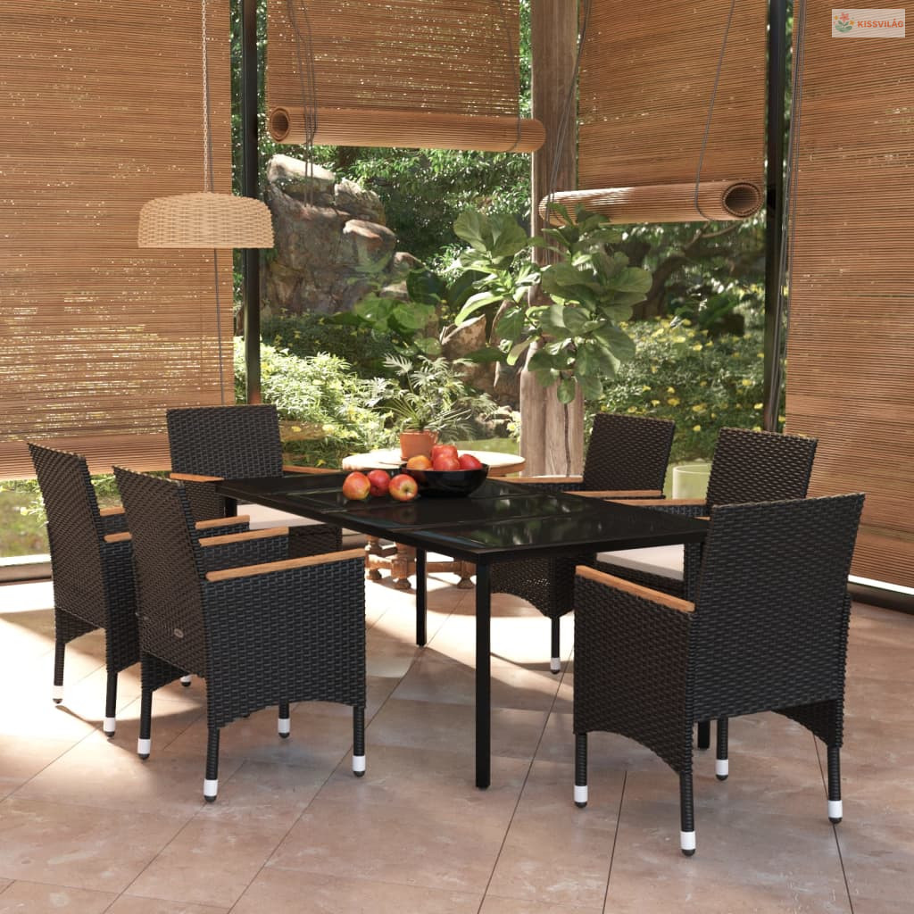 7 részes fekete kerti étkezőgarnitúra párnákkal