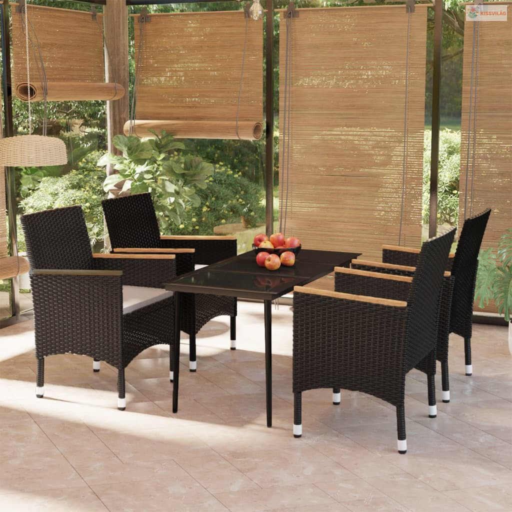 5 részes fekete kerti étkezőgarnitúra párnákkal