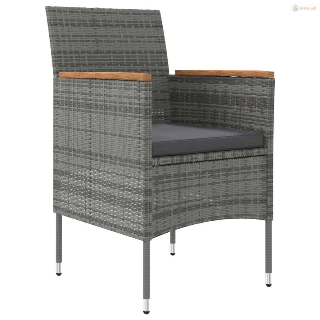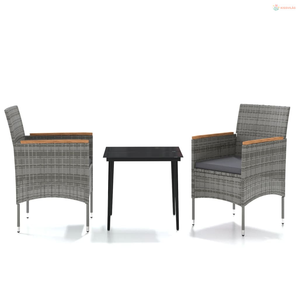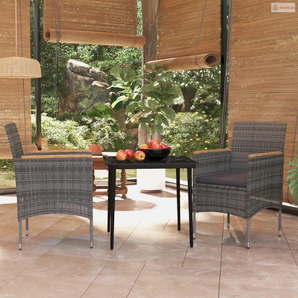 3 részes szürke-fekete kültéri étkezőgarnitúra párnákkal