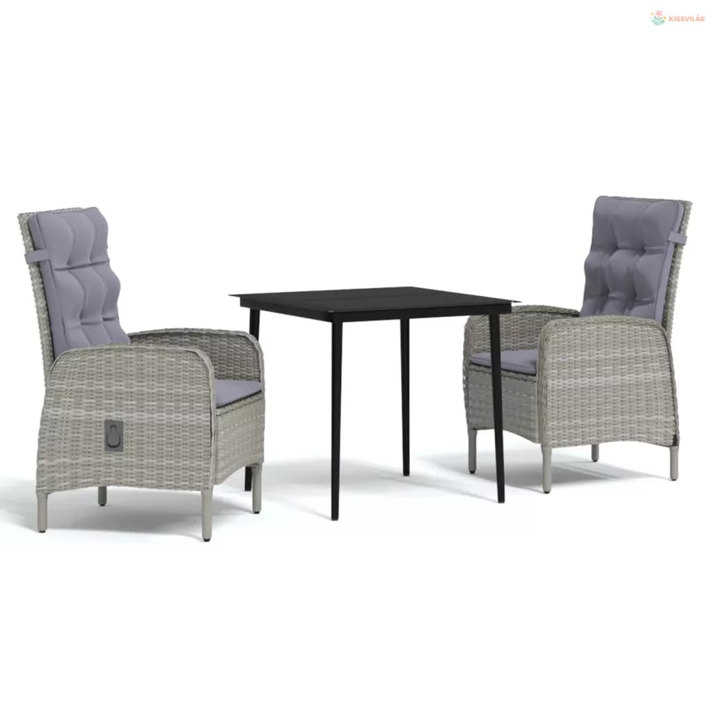 3 részes szürke-fekete kültéri étkezőgarnitúra párnákkal