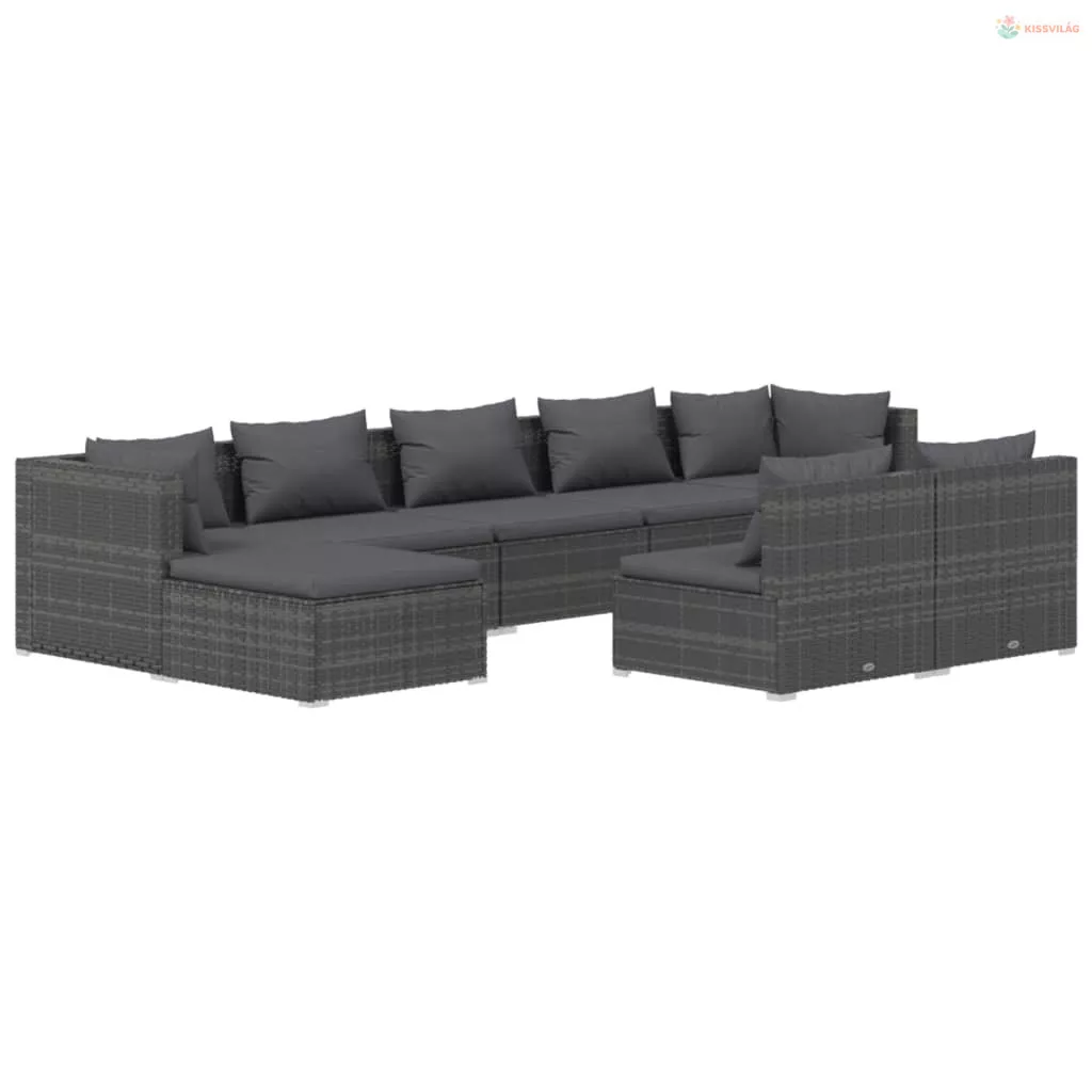 9 részes szürke polyrattan kerti ülőgarnitúra párnákkal