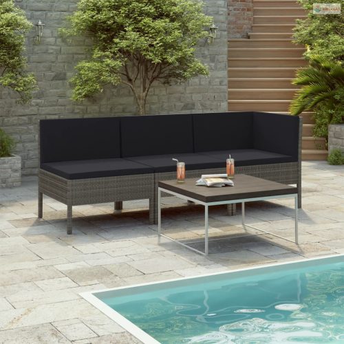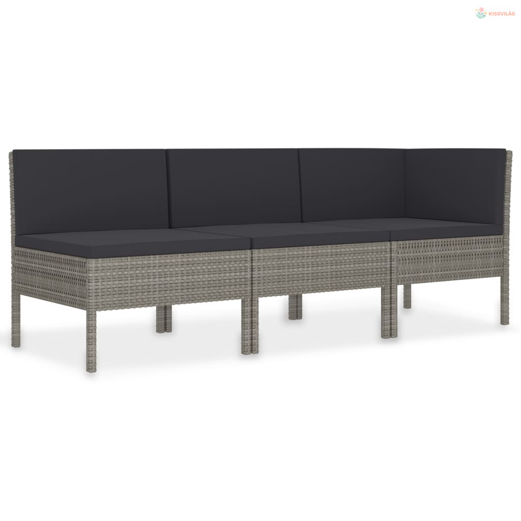 3 részes szürke polyrattan kerti ülőgarnitúra párnákkal