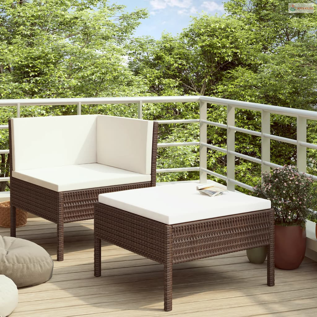 2 részes barna polyrattan kerti bútorszett párnákkal