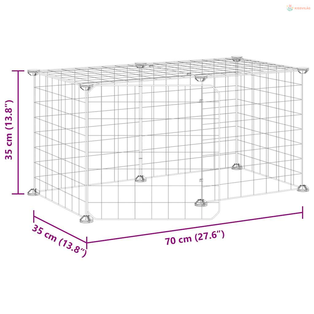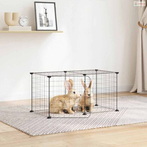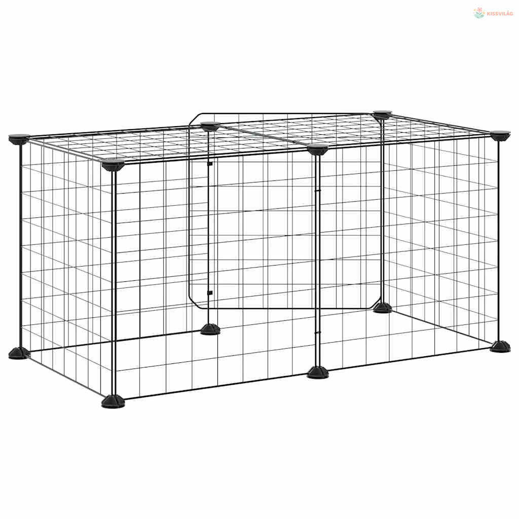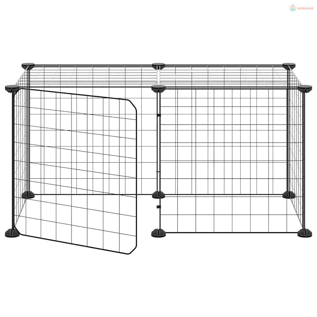8 paneles fekete acél kisállatketrec ajtóval 35 x 35 cm