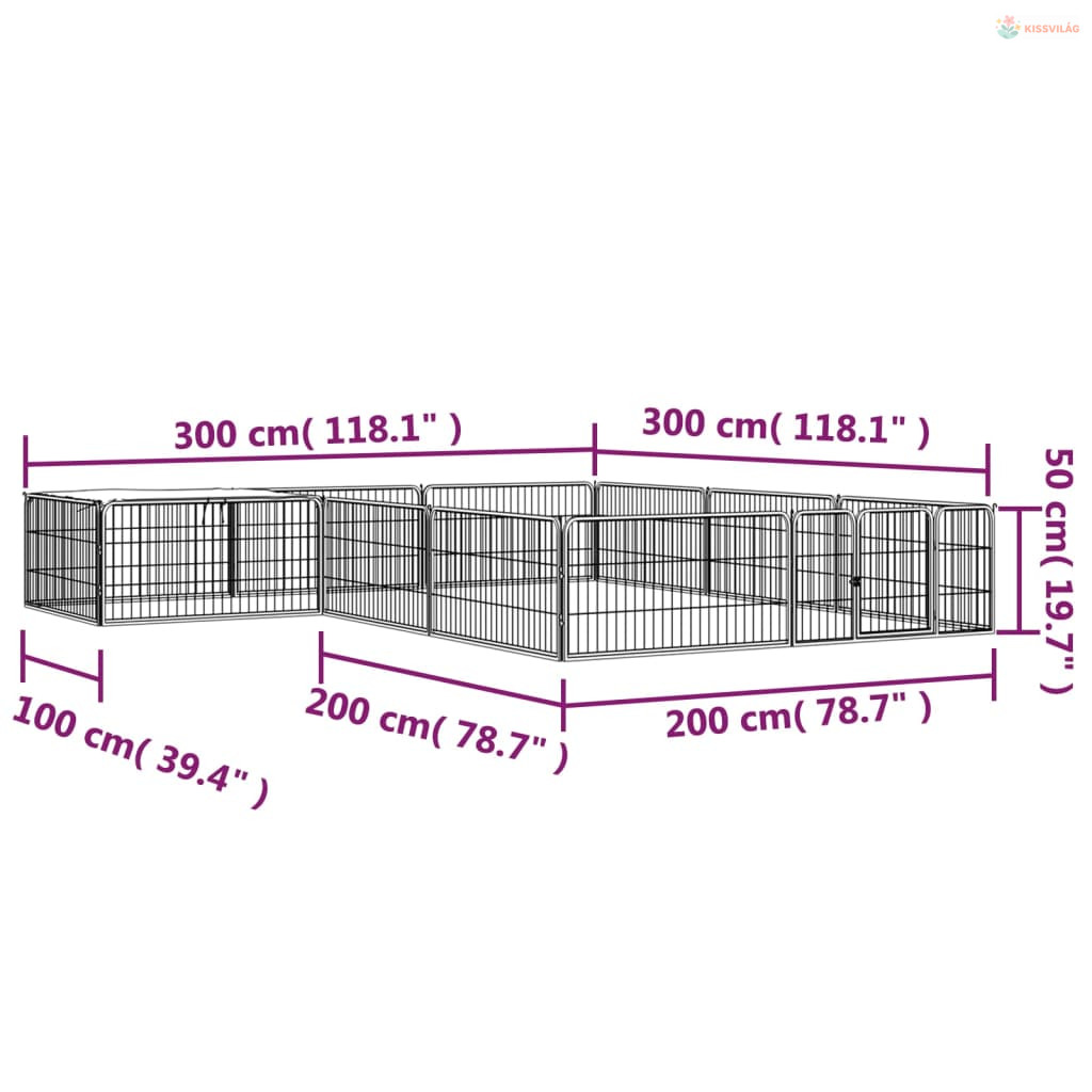 12-paneles fekete porszórt acél kutyakennel 100 x 50 cm