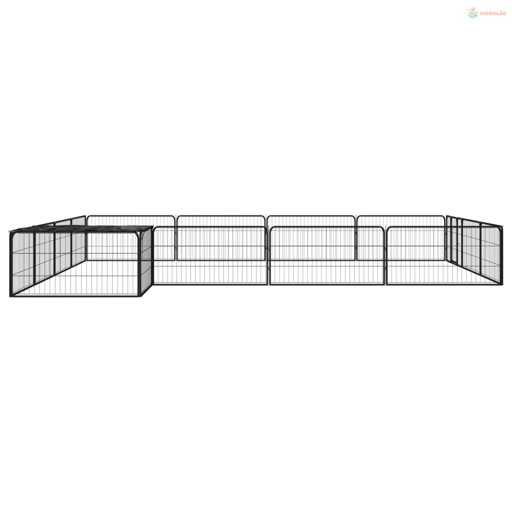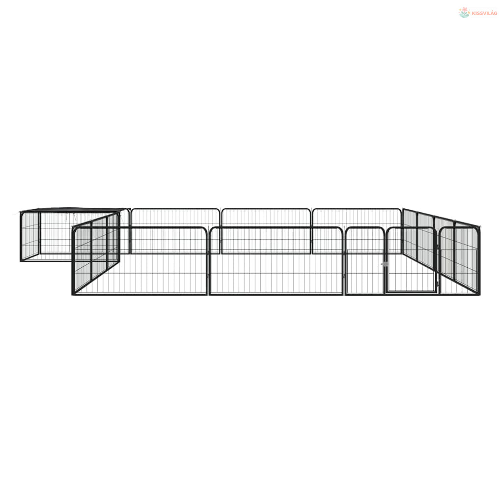 16-paneles fekete porszórt acél kutyakennel 100 x 50 cm