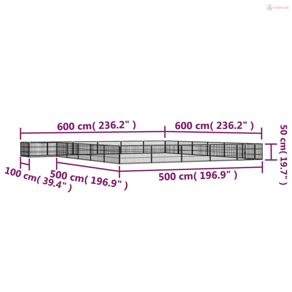 24 paneles fekete porszórt acél kutyakennel 100 x 50 cm