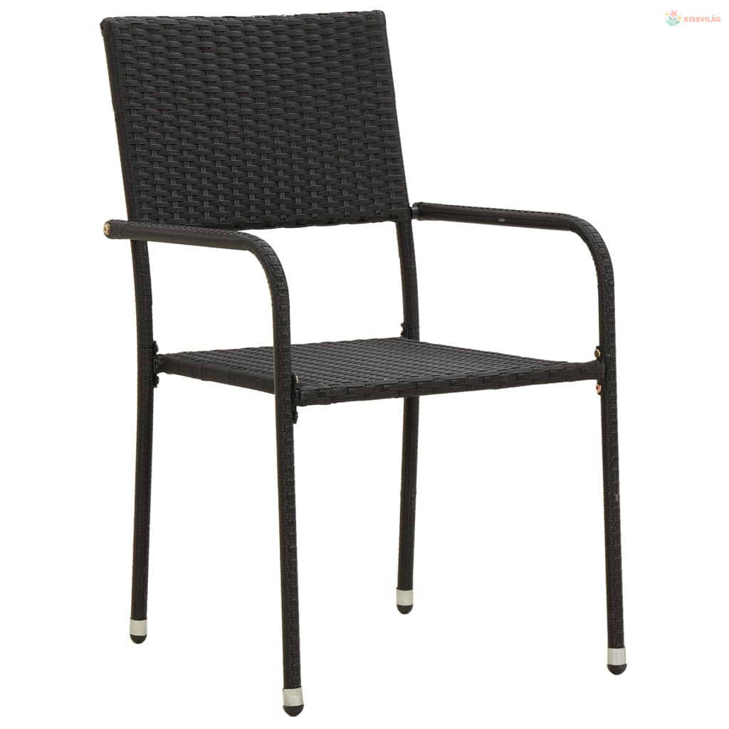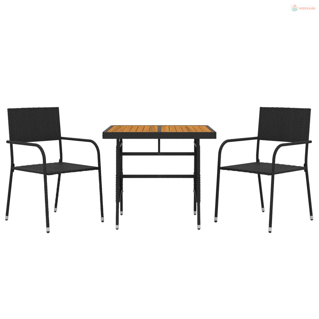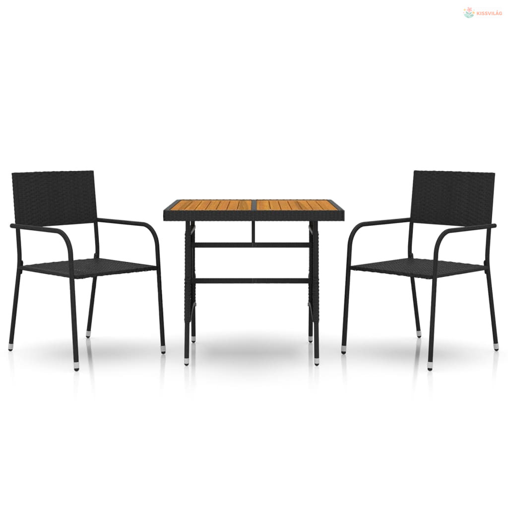 3 részes fekete polirattan kültéri étkezőgarnitúra
