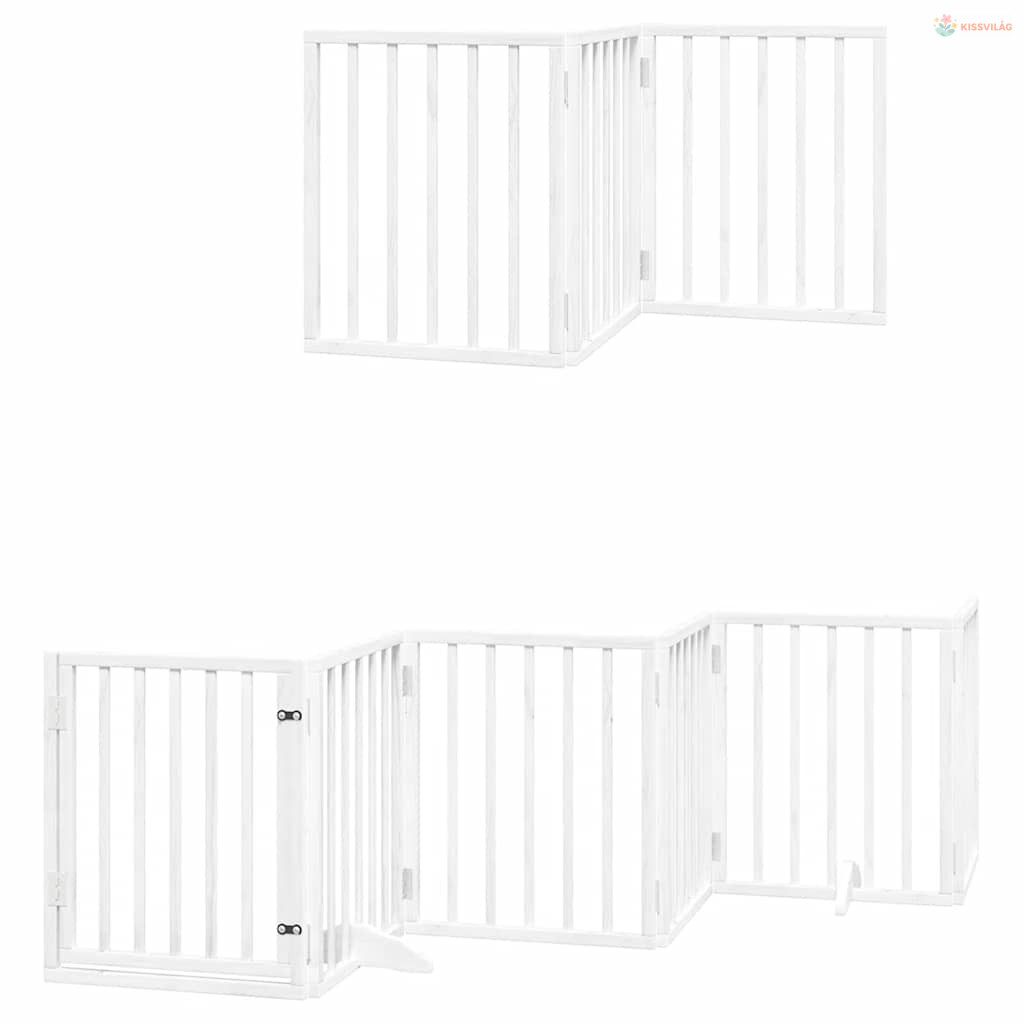 Fehér nyárfa 9 paneles összecsukható kutyakapu ajtóval 450 cm