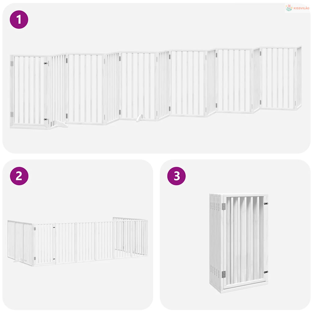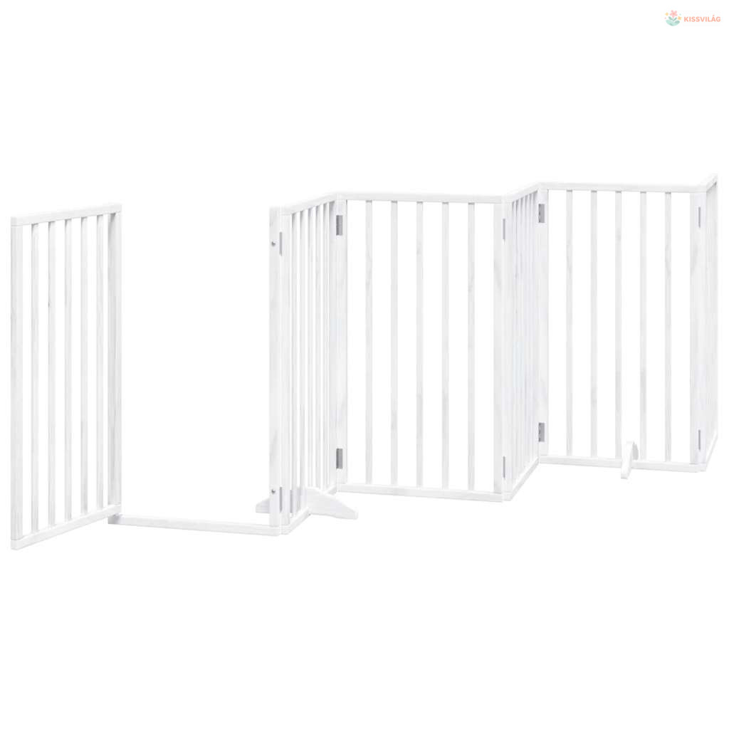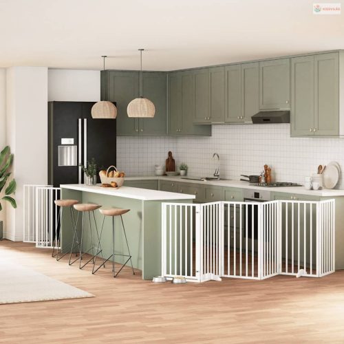 Fehér nyárfa 12 paneles összecsukható kutyakapu ajtóval 600 cm