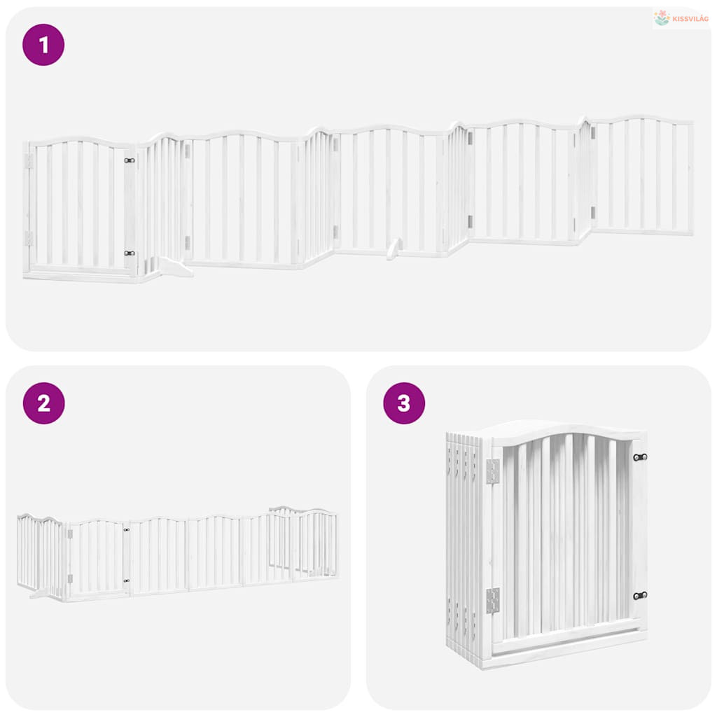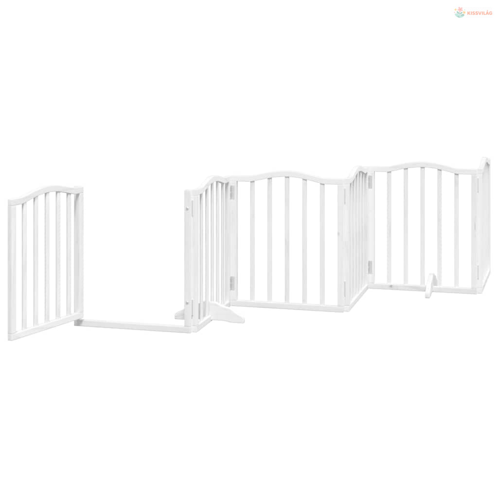 Fehér nyárfa 9 paneles összecsukható kutyakapu ajtóval 450 cm