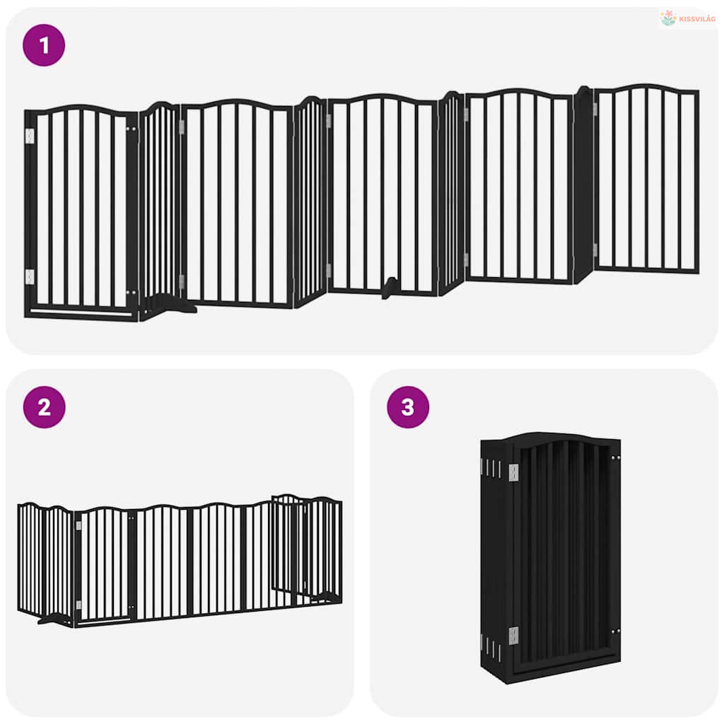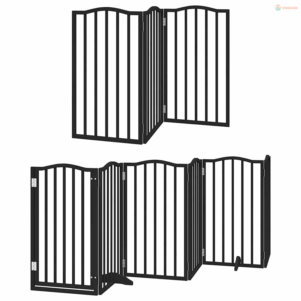 Fekete nyárfa 9 paneles összecsukható kutyakapu ajtóval 450 cm