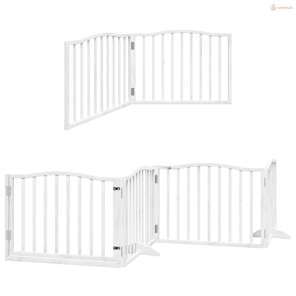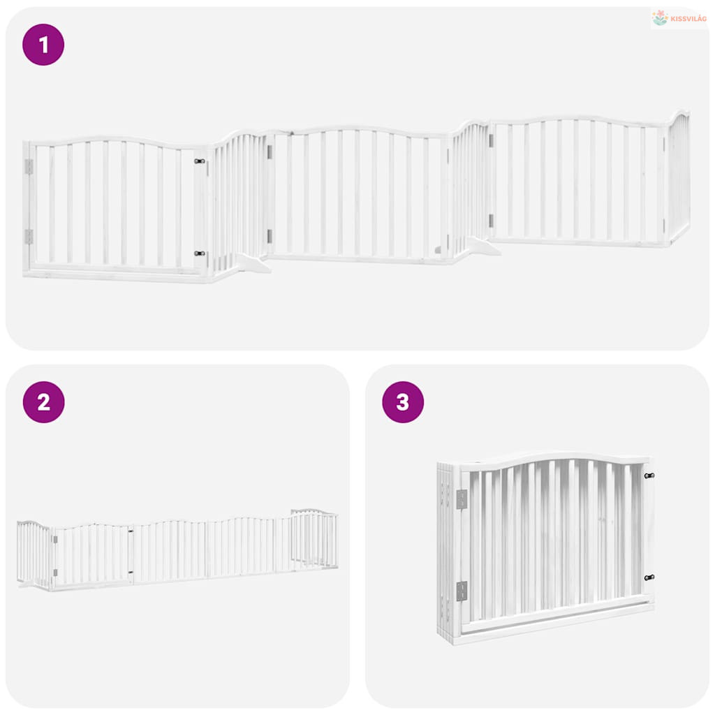 Fehér nyárfa 6 paneles összecsukható kutyakapu ajtóval 480 cm