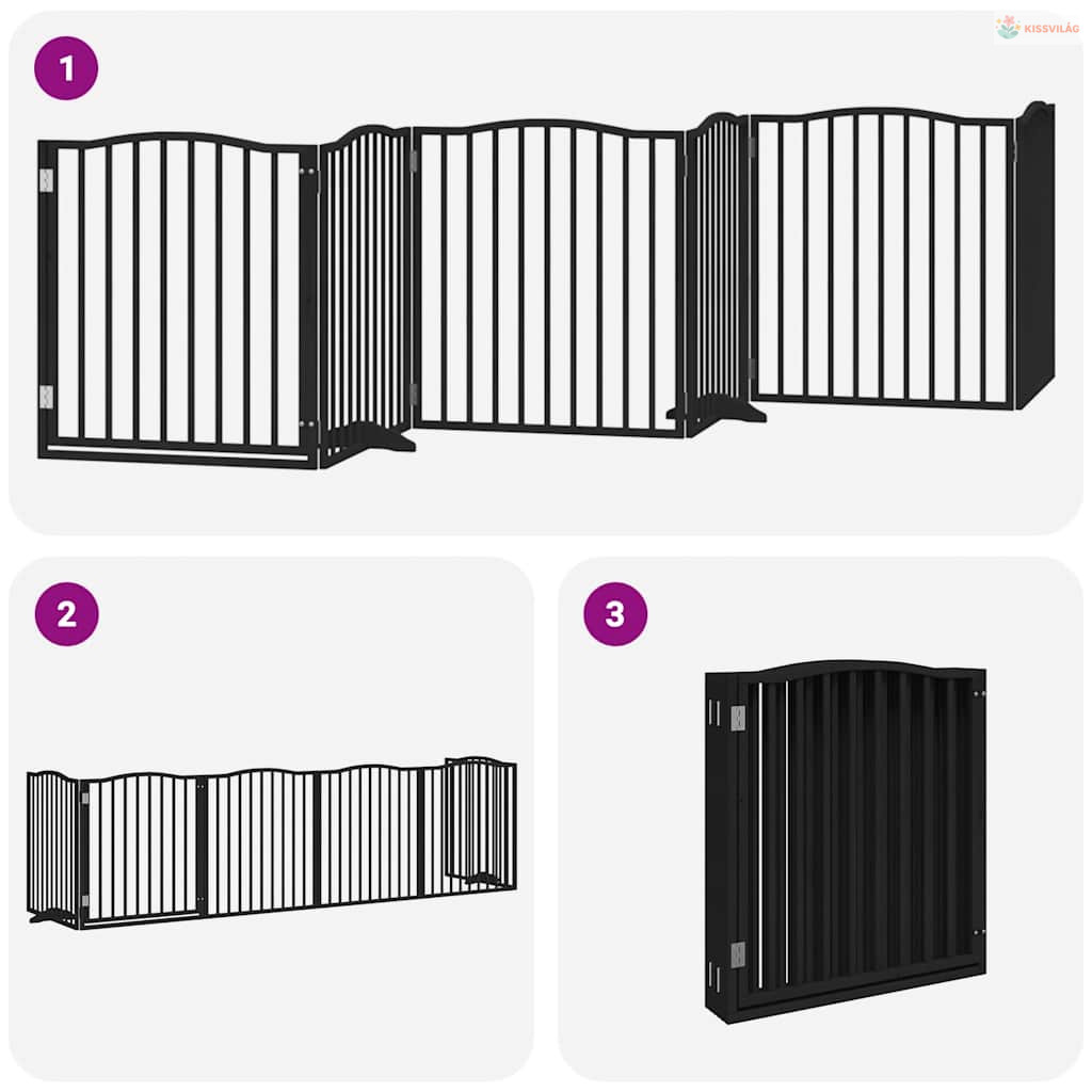 Fekete nyárfa 6 paneles összecsukható kutyakapu ajtóval 480 cm