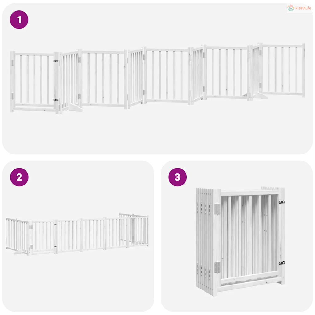 Fehér nyárfa 9 paneles összecsukható kutyakapu ajtóval 450 cm