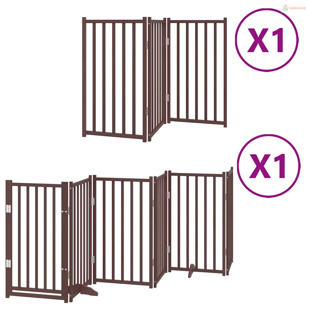 Barna nyárfa 9 paneles összecsukható kutyakapu ajtóval 450 cm