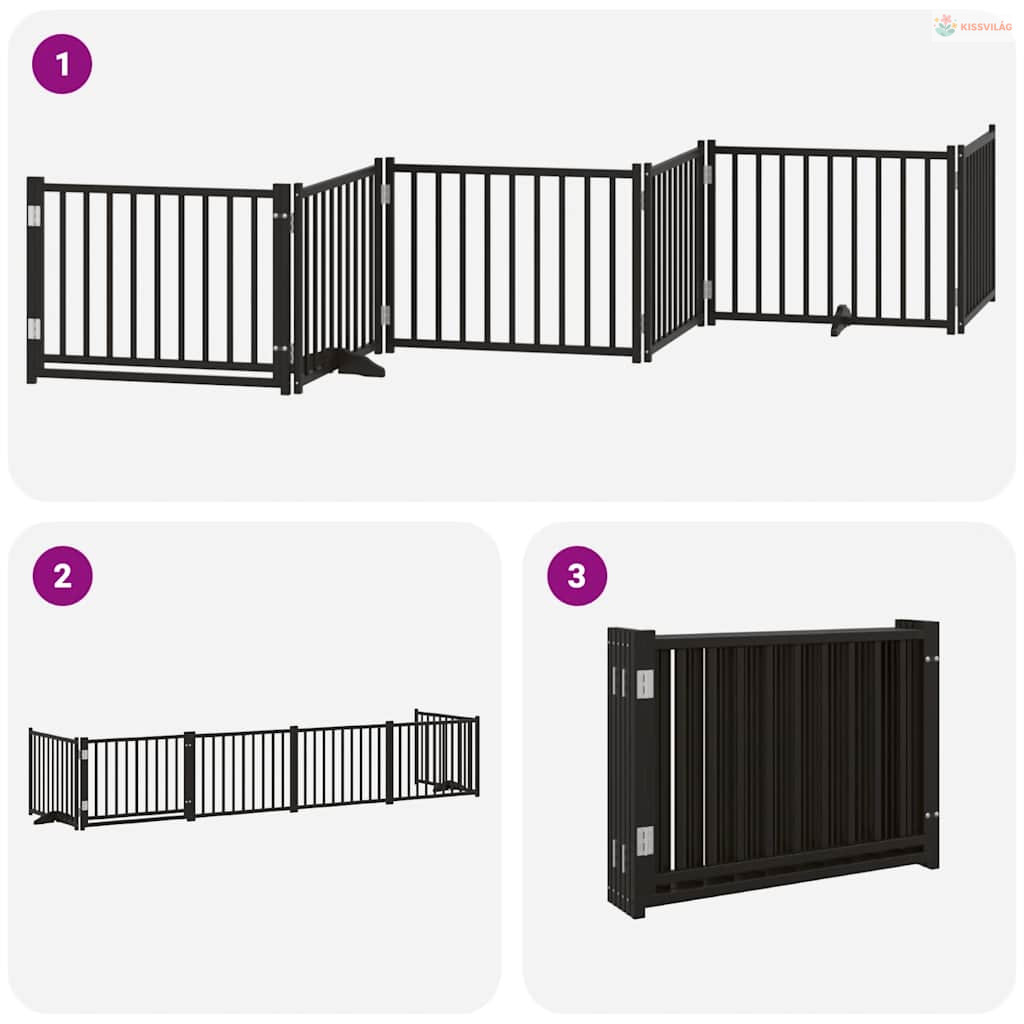 Fekete nyárfa 6 paneles összecsukható kutyakapu ajtóval 480 cm