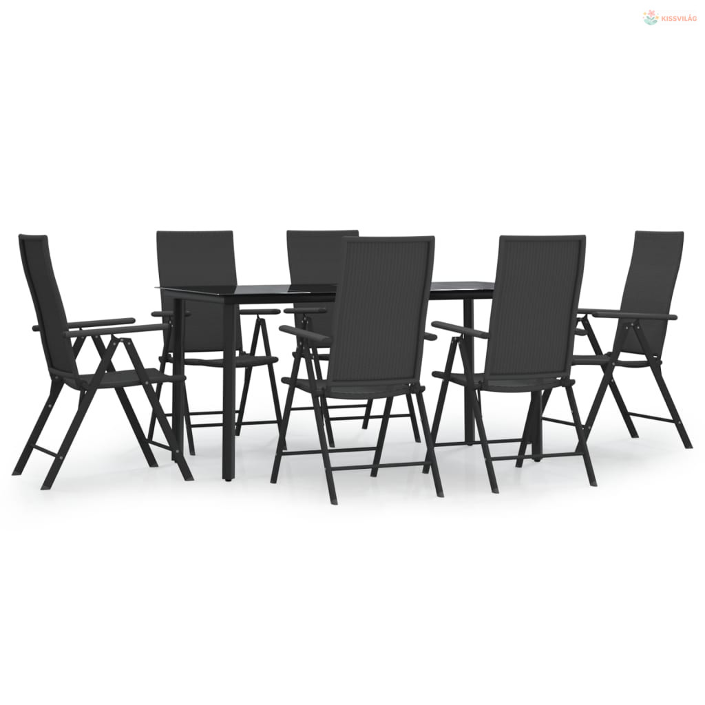 7 részes fekete polyrattan kerti étkezőgarnitúra