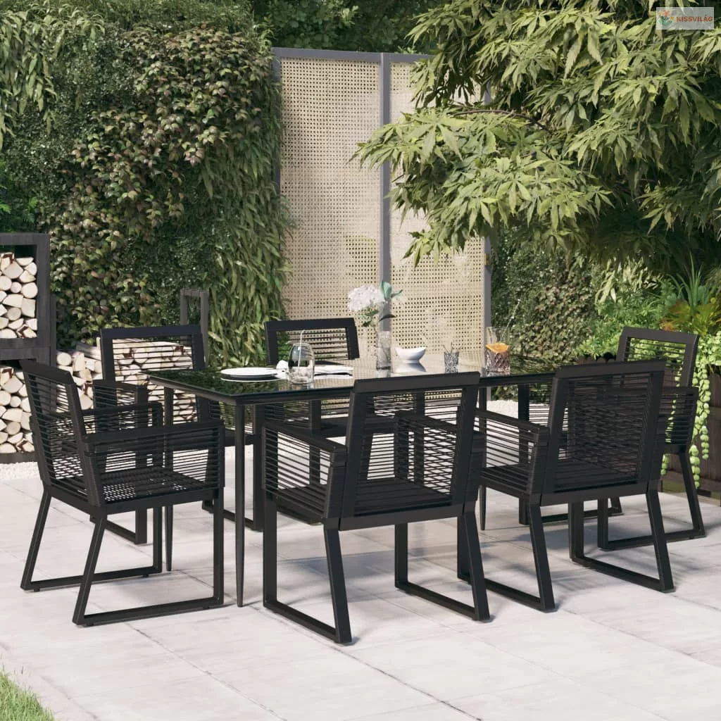 7 részes fekete PVC rattan kerti étkezőgarnitúra