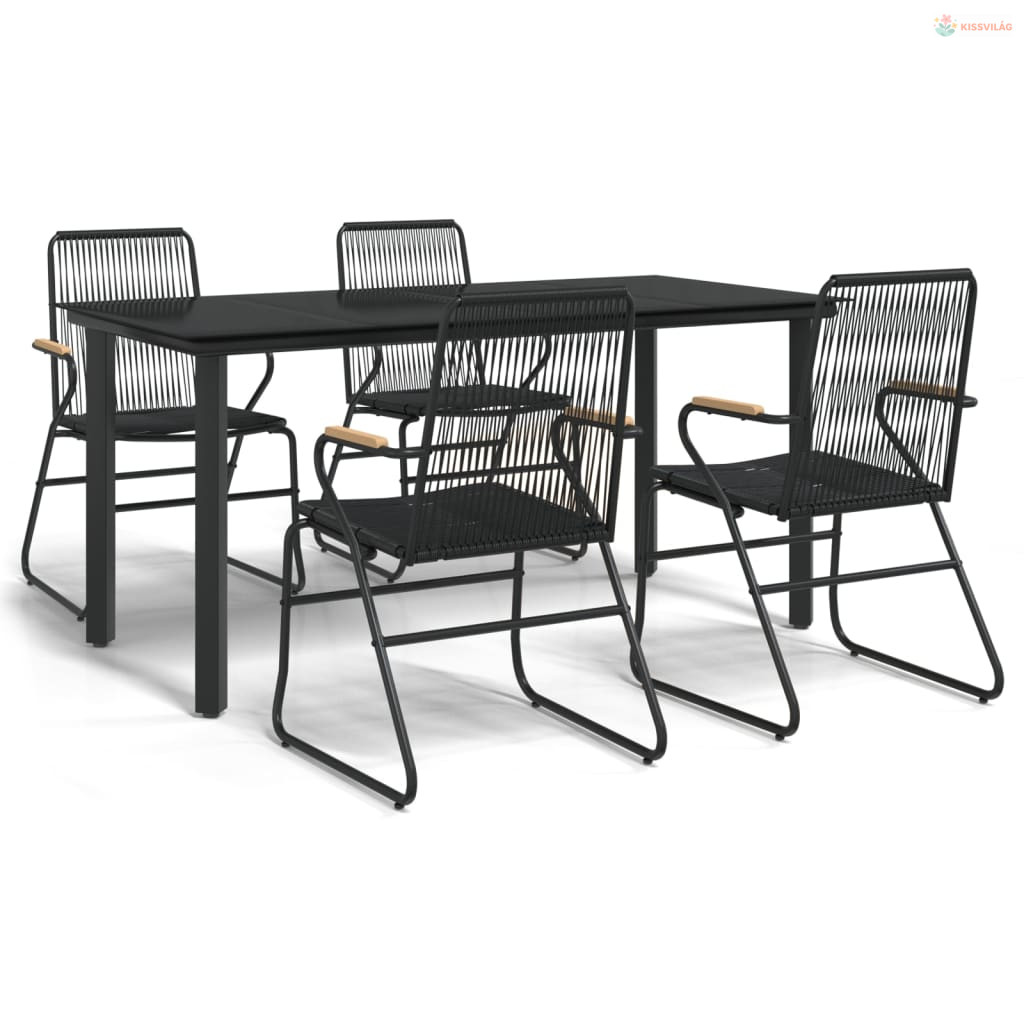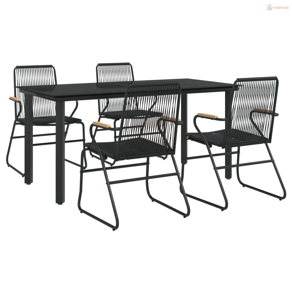 5 részes fekete PVC rattan kerti étkezőgarnitúra