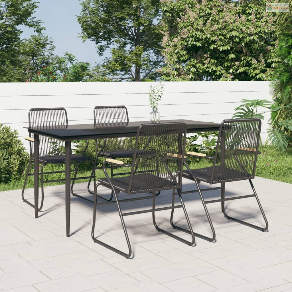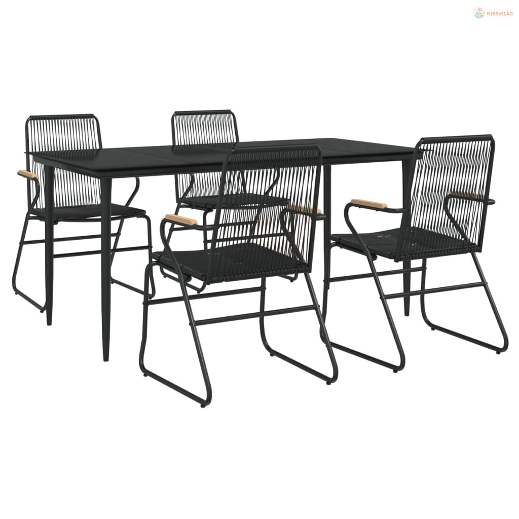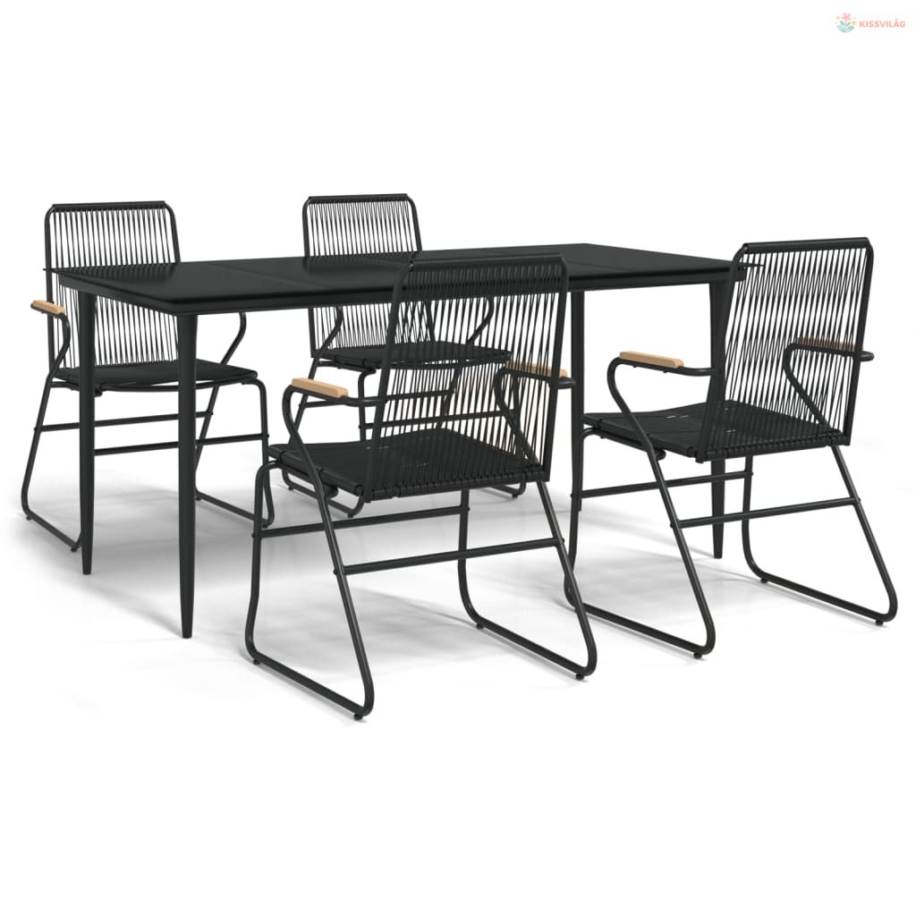 5 részes fekete PVC rattan kerti étkezőgarnitúra