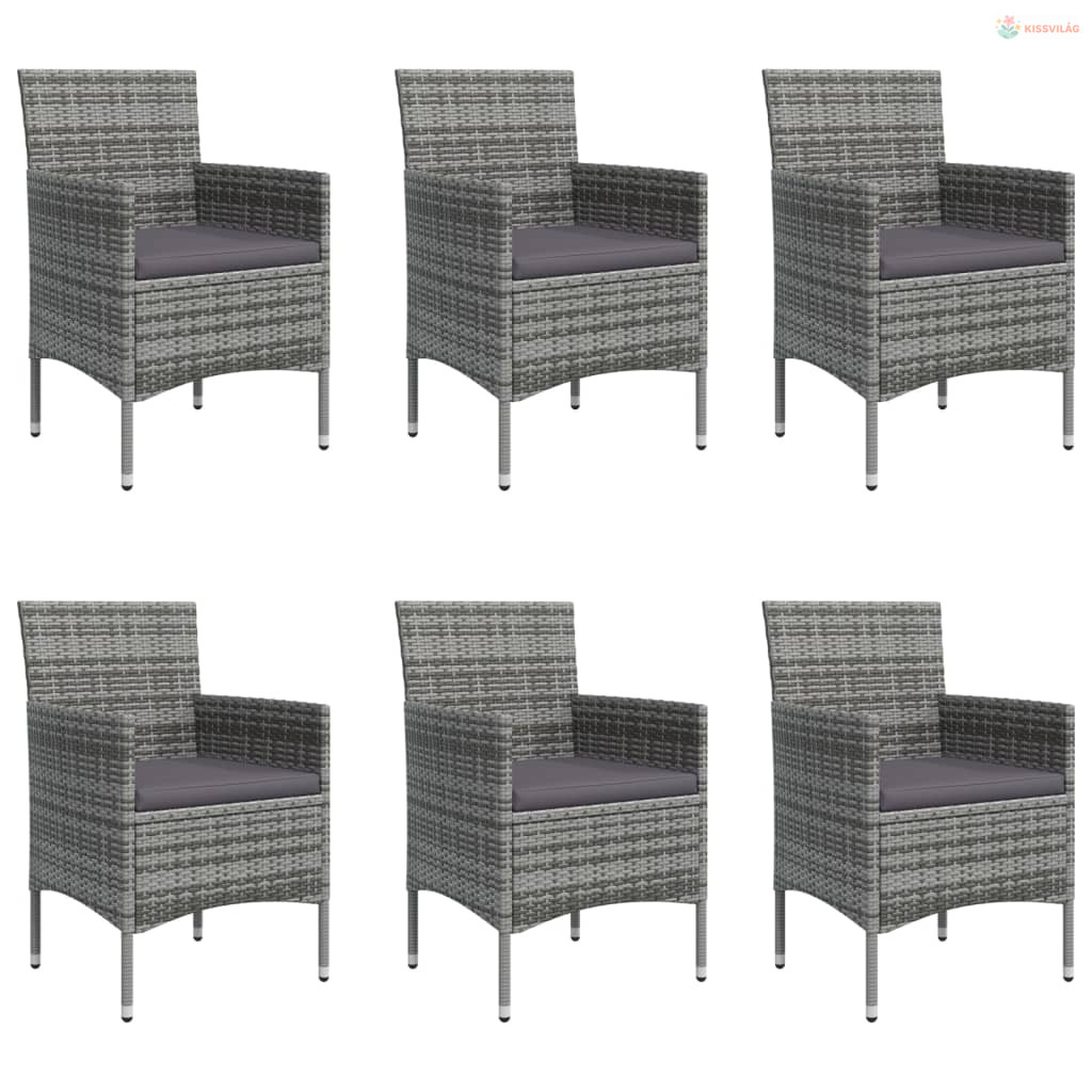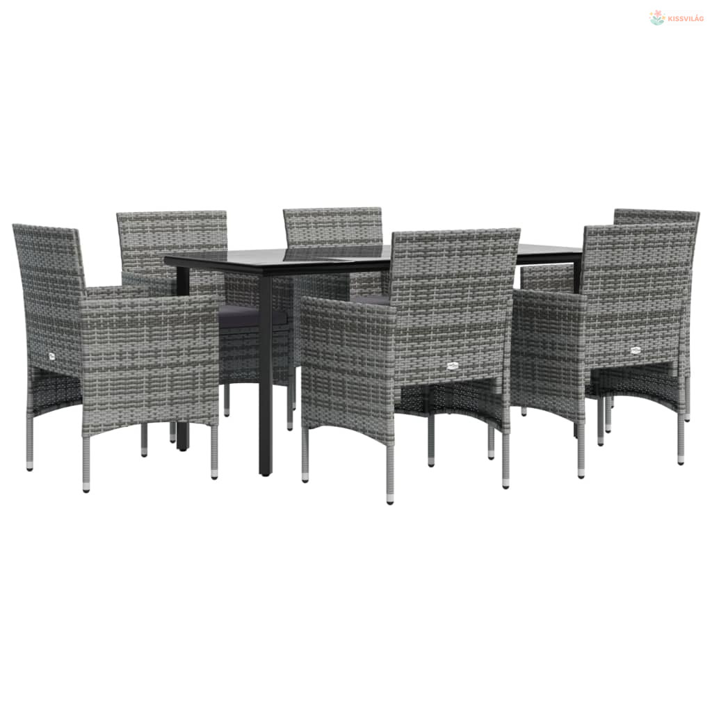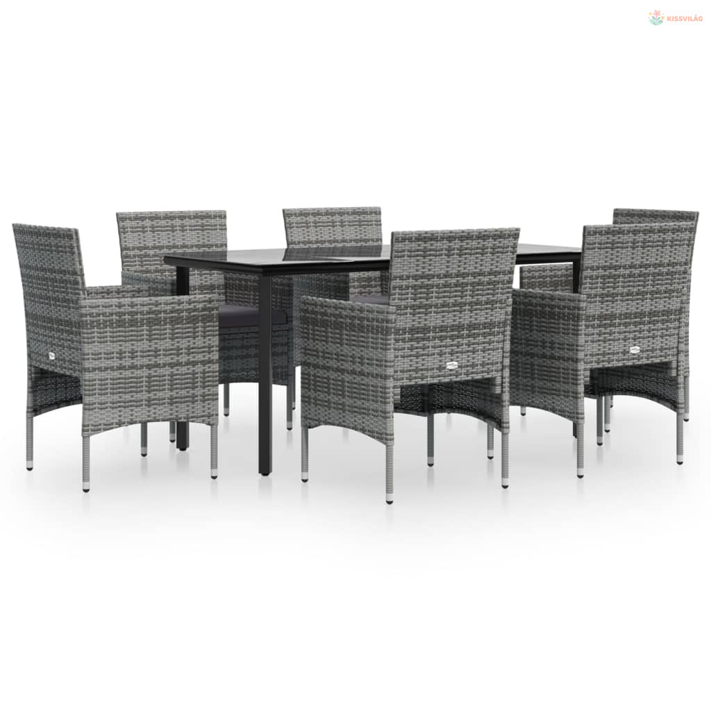 7 részes szürke és fekete kerti étkezőgarnitúra párnákkal
