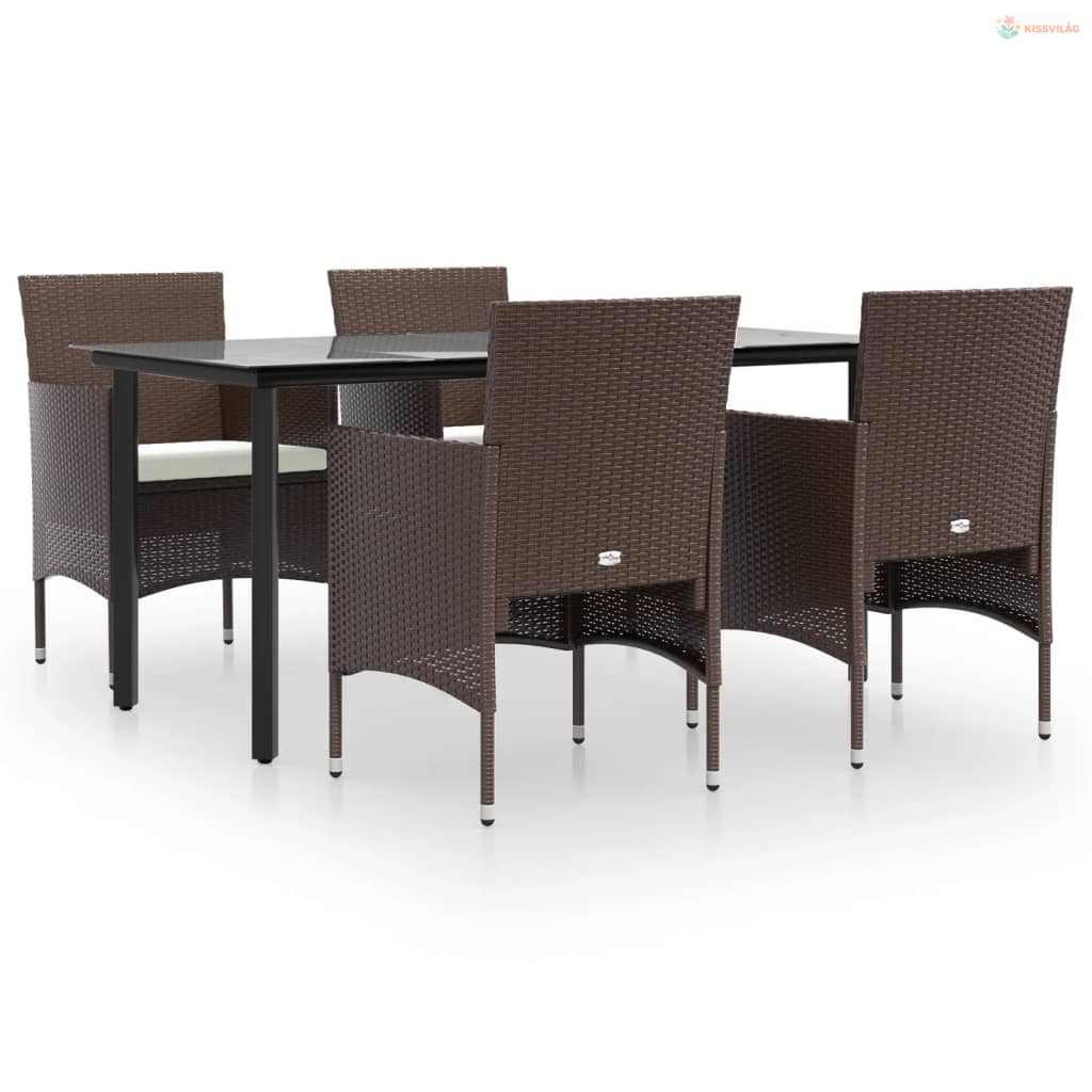 5 részes barna és fekete kerti étkezőgarnitúra párnákkal