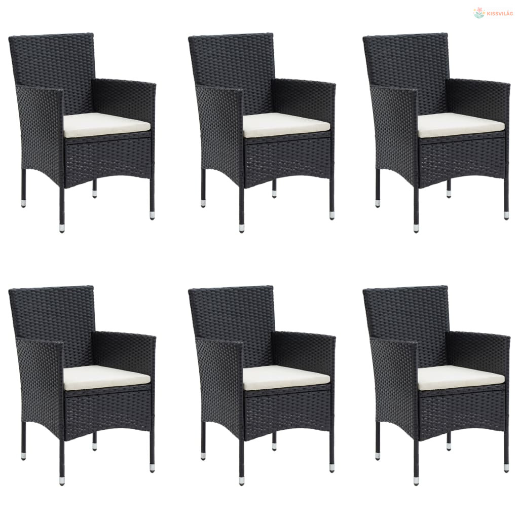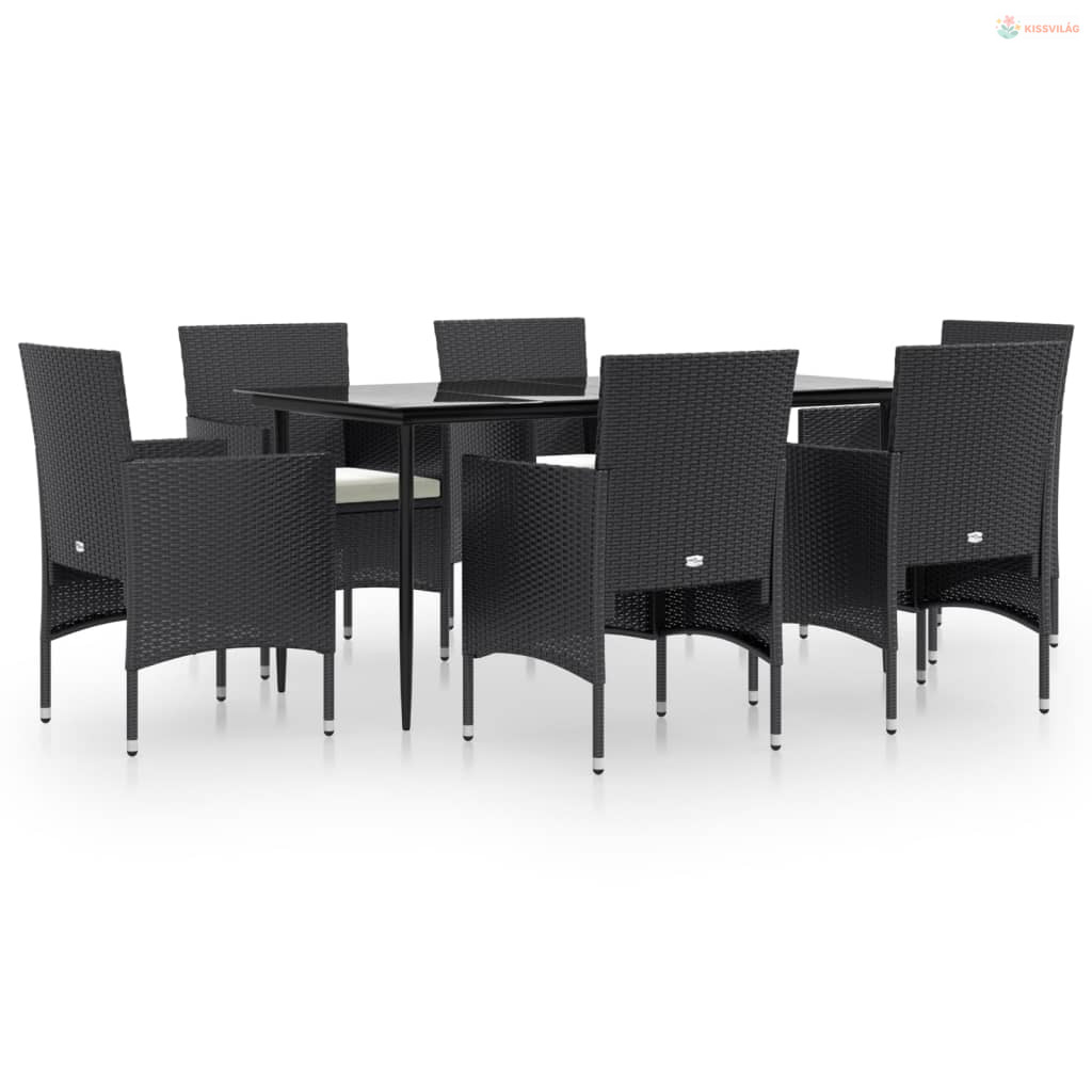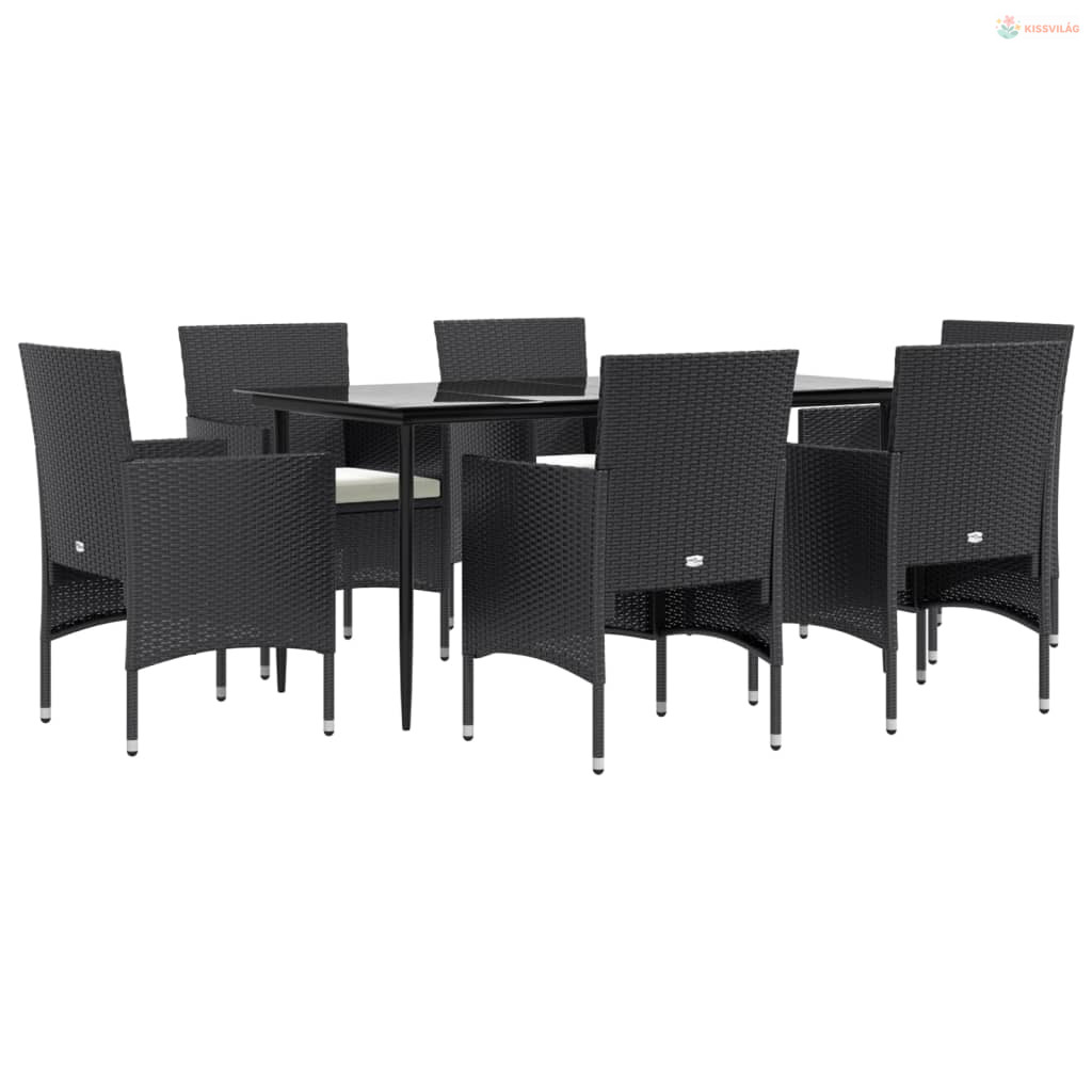 7 részes fekete kerti étkezőgarnitúra párnákkal